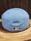 Elevate your headwear collection with the Philadelphia Phillies New Era 59Fifty Fitted Hat. A timeless staple in team pride, this cap features a solid blue colorway that's easy to pair with any outfit. Designed for the dedicated fan, it's perfect for sporting events, casual wear, or adding a touch of sportiness to your ensemble. Crafted for comfort and style, the hat comes in a size 7 3/8, ensuring a snug fit for a variety of head shapes. The wide brim offers ample shade, making it a versatile choice for any occasion, from a day at the office to a weekend getaway. Whether you're a Phan or simply appreciate a classic baseball cap, this accessory is sure to complement your wardrobe.