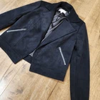 Featuring a stylish Philosophy women's faux suede black moto jacket in a size XS. This is a perfect style that you can throw on over any outfit. It's a great style that you can wear from day to night. It is an open style with no closure. There are two slant zipper functional pockets. It is a slightly more cropped style. It's in fantastic condition. Add it to your closet today! brand: Philosophy size: XS fabrication: faux leather: 92% polyester/ 8% spandex lining: 100% polyester measurements: approximate pit to pit: 19.5" pit to hem: 11" shoulder to hem: 20.5" sleeve length: 23"