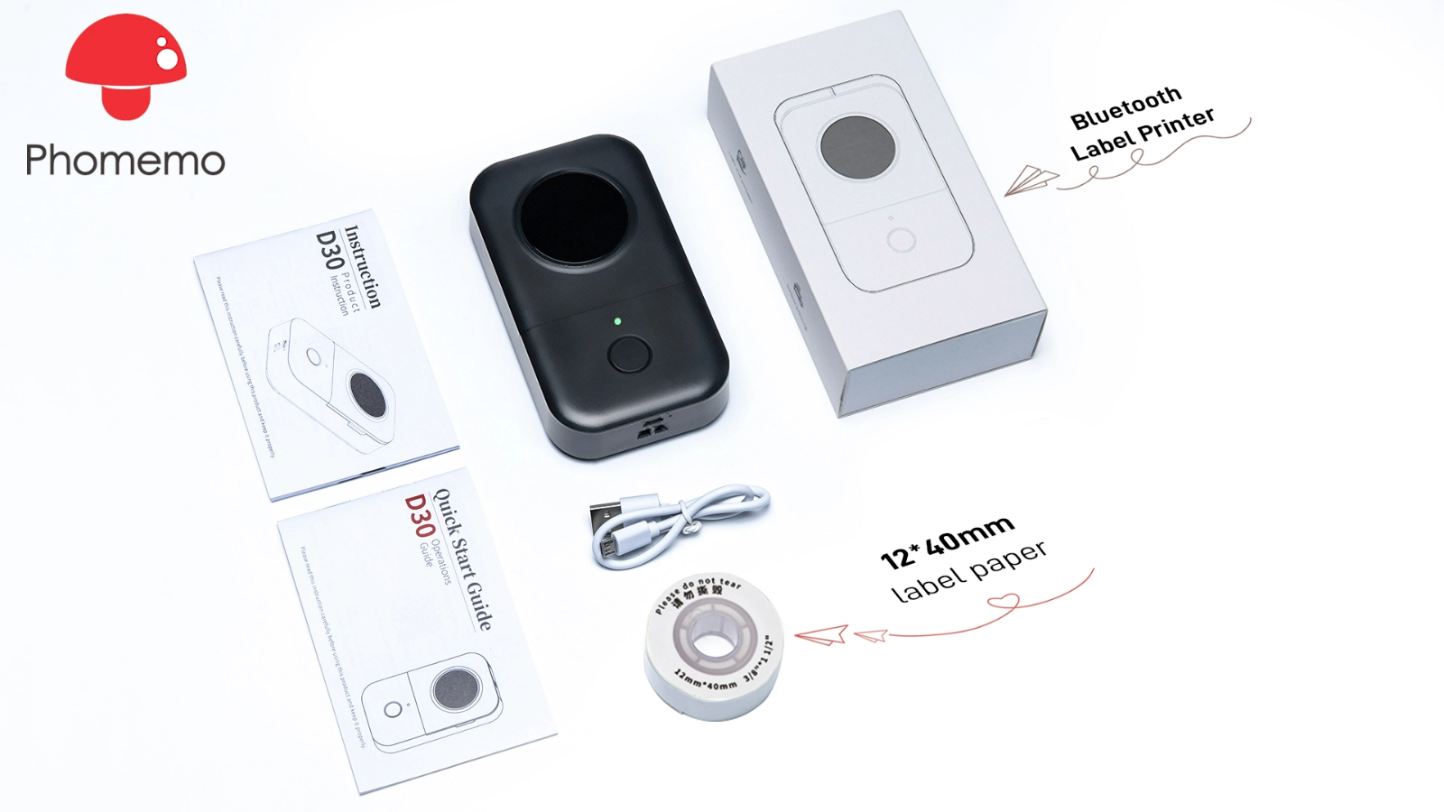 Phomemo D30 Bluetooth Pocket Label Maker Machine Wireless Mini Portable Thermal Label Printer Sticker Phomemo D30 Bluetooth Thermal Label Maker Handheld portable small Bluetooth thermal printer machine with tape, m ultiple templates available for smartphone easy to use for Home, Office Organization. ★ Upgraded Version: Lighter and smaller than traditional label Makers. DPI increased by 25%. C an print 52 rolls of paper continuously after being fully charged. ★ Multipurpose: Phomemo D30 label printer can be used in clothing storage, kitchen storage, daily necessities labeling, office supplies, supermarkets, student supplies, pharmacies, etc. It Can print storage labels, name labels, price labels, and other item remarks. ★ Bluetooth and portable Label Printer: A label printer with Bluetooth connection which supports long-distance printing(10 meters), easy and fast printing, creating labels from mobile devices, easy to customize labels. Support Android and iOS system. ★ 【Print Master】 app editing, easy to operate, massive materials, more creative labels to DIY. Phomemo D30 label printer is compatible with diverse thermal labels from Phomemo, which includes transparent, white, colorful, pattern, square, round labels, etc. ⊙ Tips for using app -Install [Print Master] app from Apple Store & Google Play -> Open the app and turn on D30 printer -> Choose printer model D30 from menu and then click “unconnected” button at the top of the screen -> Match and connect Bluetooth via the app. ★ Save money -Direct thermal technology-no ink, toner, and lower cost compared with inkjet printers. ★ High-Quality & Fast Printing -This thermal label printer provide 203dpi printing resolution, so as to achieve worry-free printing-high-quality clarity, dark imaging and smooth printing effect and fast processing. -Quick print by one click of the "Print" button of the app "Print Master" . -When it's fully charged, the printer can print more than 50 rolls of the thermal labels. -Fast printing: The printing speed is extremely fast, and the paper is quickly output in 1s.(Print Speed: 60mm/s ) Packing List (Printer): 1× Phomemo D30 Mini Printer 1× USB Cable 1× User Manual 1× Packing Box 1 × Roll of White Square 12*40mm Thermal Paper (inside the printer) *If you choose and buy label ONLY, you will receive label ONLY, no printer. Type of Label: Product Name Size Adhesive or not Pcs/Roll Quantity 12×30mm White Label 12×30mm Yes 210pcs 3 Rolls 12×40mm White Label 12×40mm Yes 160pcs 3 Rolls 14×40mm White Label 14×40mm Yes 160pcs 3 Rolls 14×50mm White Label 14×50mm Yes 130pcs 3 Rolls 15×50mm White Label 15×50mm Yes 130pcs 3 Rolls 14×25mm Transparent Label 14×25mm Yes 250pcs 3 Rolls 14×30mm White Label 14×30mm Yes 210pcs 3 Rolls 15×30mm White Label 15×30mm Yes 210pcs 3 Rolls On Apr 19, 2024 at 15:49:43 PDT, seller added the following information: On Aug 31, 2024 at 23:49:41 PDT, seller added the following information:
