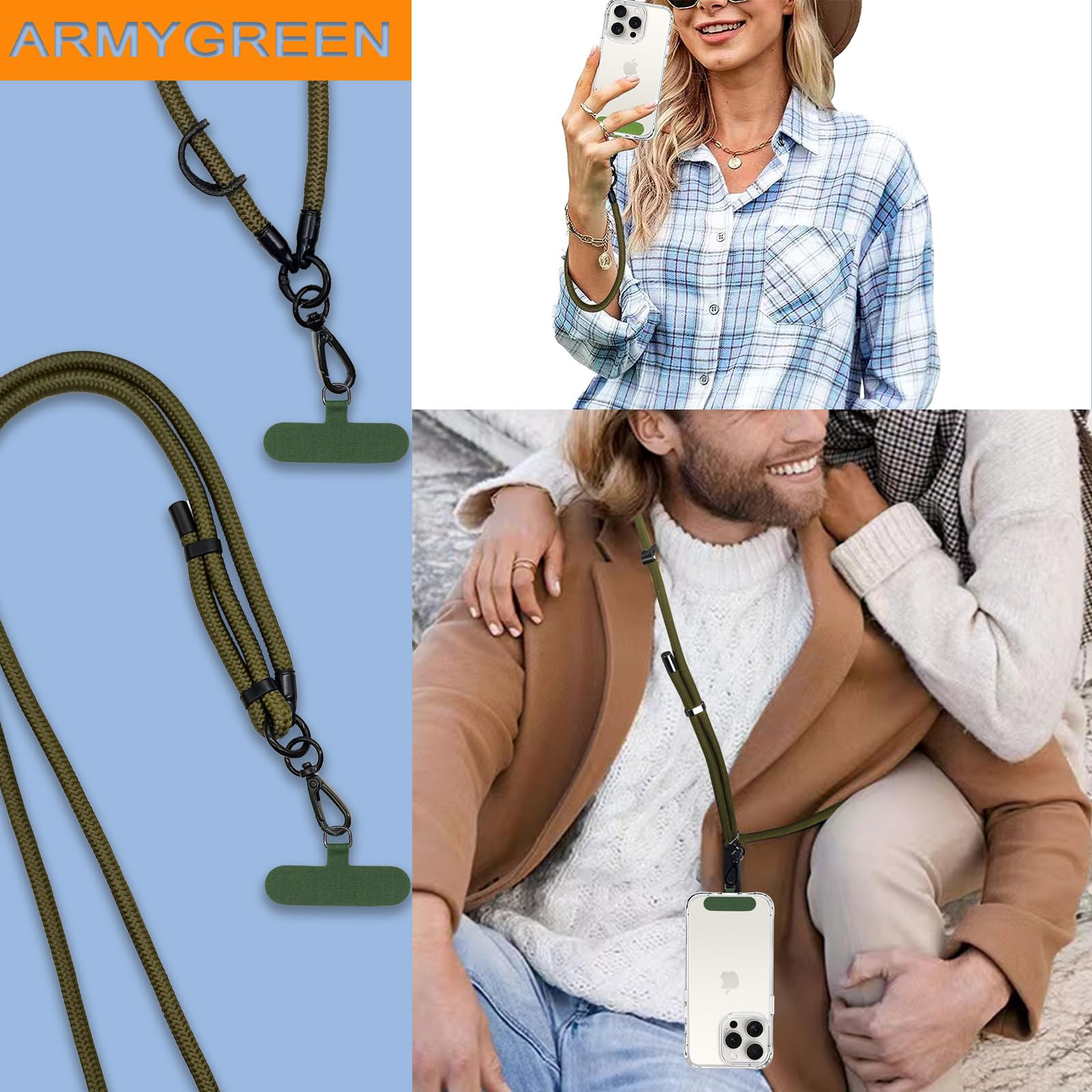 Versatile Phone Lanyards: This product is a multi-functional accessory that can be used as a Crossbody and Wrist Lanyard, ideal for keeping your phone secure and accessible. Secure Design: Made of sturdy polyester, the Cell Phone Lanyard features an 8mm diameter strap that is strong and reliable, ensuring that your phone stays securely by your side at all times,you don't need to worry about your cell phone falling down suddenly. Hands-Free Convenience: Phone Lanyards for Around the Neck or cross body phone lanyard offer the convenience of freeing your hands for various activities such as walking, walking dogs, traveling, and shopping,also the phone chain can free your hand to do other things. Adjustable Length: The iPhone Lanyard Phone Strap and Wrist Strap are designed for both women and men, with adjustable length options to provide a comfortable fit for all users. Stylish and Practical: This Phone Lanyard is not only functional but also stylish, making it a perfect accessory for those who want to keep their phone secure without sacrificing style.