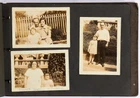 (Photo album): Family Photo Album of a Young Couple Traveling Together and later Traveling with their Children Title: (Photo album): Family Photo Album of a Young Couple Traveling Together and later Traveling with their Children Publication: South Dakota / Catskill Mountains, New York / Coney Island: [Circa 1930s] Description: Hardcover. Oblong octavo measuring 8" x 6". String tied, black leather over stiff paper boards with "Photographs" stamped in gilt. Contains 54 sepia gelatin silver photographs measuring between 3.5" x 2.5" and 7" x 5" with some captions. Edgewear with a couple pages detached but present thus very good album with near fine photographs with small tears. A photo album containing pictures of a young couple traveling to different places together and later with their children during the early to late 1930s. The couple is often seen sitting next to each other, looking intensely into the camera or wearing big smiles. There is one photo with the young woman mid-laugh with her husband half-smiling as they walk together. Some photographs show the couple's automobile and little flags that read "Parkston, SD" and "Catskill, Mts. NY". Other photographs show the couple's young daughter, Sylvia, in their arms or posing with flowers around their home. There are several beach pictures from Coney Island before the couple have their children and some in 1937 with both their daughter and son posing in a large photograph together. An interesting collection of a young couples' adventures together and later with their family in the late-1930s, showing ordinary life in the middle class during the Great Depression. Seller ID: 417340 Between the Covers Between the Covers has been selling books for more than 30 years. Today we offer a wide ranging inventory, from Modern First Editions to General Used Books to Rare Archival Collections. We are active members of the Antiquarian Booksellers' Association of America (ABAA) and the International League of Antiquarian Booksellers (ILAB) . Terms All orders ship within two business days. Standard mail is USPS Media Mail. Expedited and international shipping are also available. We offer combined shipping on multiple orders. All books are guaranteed to be as described or they may be returned within 30 days of receipt for a full refund. This listing was created by Bibliopolis.