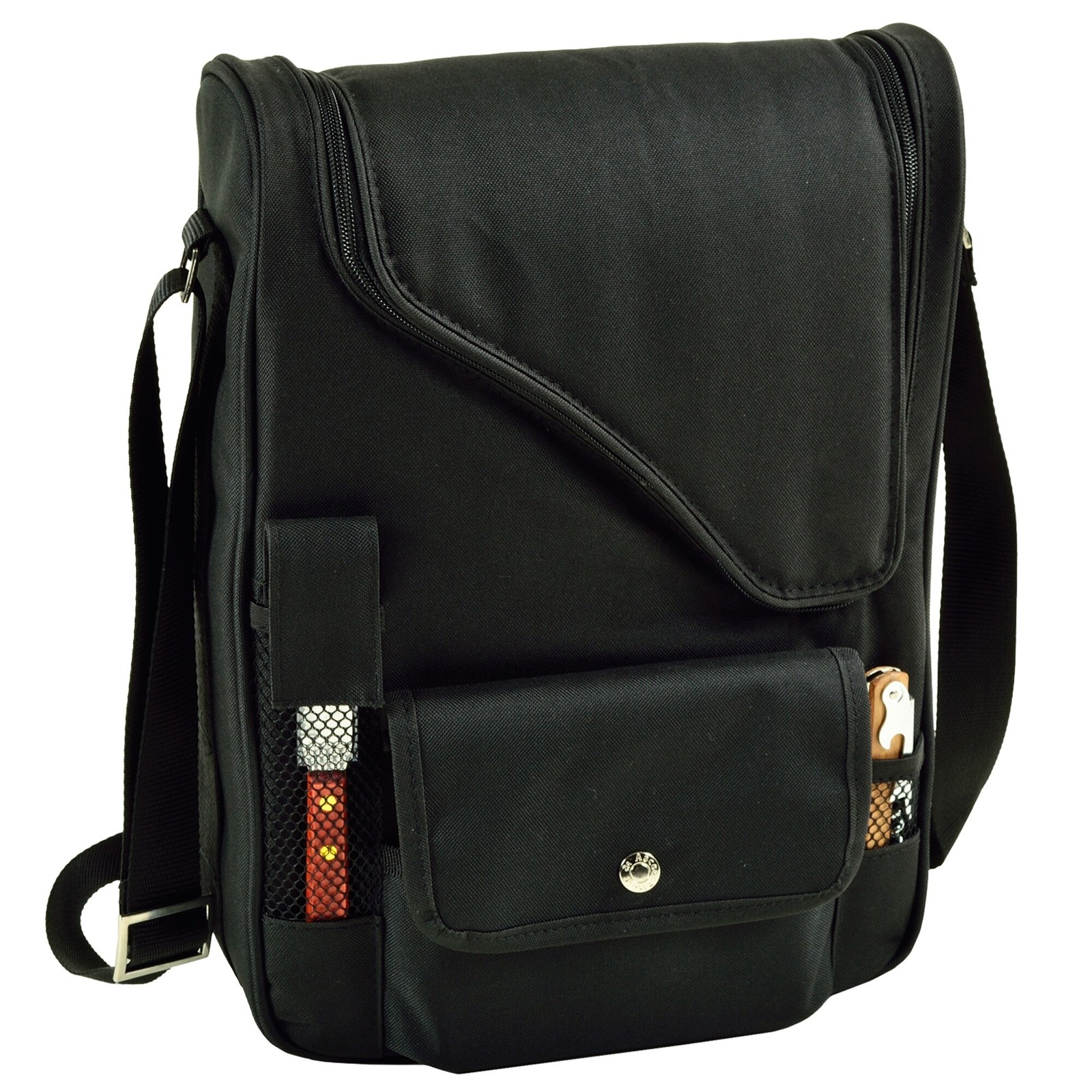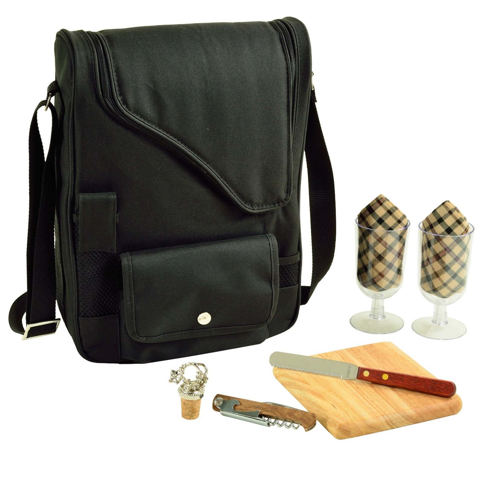 Bordeaux Wine & Cheese Cooler with Thermal Shield insulation is a creatively designed carrier which includes real glass wine glasses, napkins, a corkscrew, bottle stopper, cheese knife, and hardwood cutting board. This unique set holds two bottles and can be used as a three bottle carrier with glasses removed. Includes adjustable padded bottle dividers and padded divider between glasses for protection. The attractive slim profile case has a comfortable adjustable shoulder strap to carry. Designed and Assembled in the USA. Lifetime Warranty. Free Shipping Over $49.99* Details Picnic at Ascot - Wine & Cheese Cooler bag Product Description: Bordeaux Wine & Cheese Cooler with Thermal Shield insulation is a creatively designed carrier which includes real glass wine glasses, napkins, a corkscrew, bottle stopper, cheese knife, and hardwood cutting board. This unique set holds two bottles and can be used as a three bottle carrier with glasses removed. Includes adjustable padded bottle dividers and padded divider between glasses for protection. The attractive slim profile case has a comfortable adjustable shoulder strap to carry. Designed and Assembled in the USA. Lifetime Warranty.