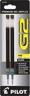 Pilot G2, 2/Pack Gel Ink Refill for Rolling Ball Pens G2 Refills: Enables you to continue using your favorite gel pen without needing to replace the entire pen; G2 has been proven to be the longest-lasting gel ink pen that allows you to write more (Data on File) Smooth & Vibrant Ink: Smooth-flowing gel ink glides effortlessly across paper, producing precise, clean lines; Available in ultra-fine, extra-fine, fine and bold point sizes so you can find the perfect pen for your writing style Versatile: Perfect for everyday writing tasks and creative projects like drawing, sketching or doodling; Ideal for use at home, school, or in the office Quick Drying & Compatible: The vibrant, quick drying ink helps prevent smudges and smears for neat and professional-quality documents; Fits a wide variety of Pilot gel ink pens Power to the Pen: Express yourself effortlessly with Pilot's line of innovative writing tools, including gel ink, erasable, rolling ball, ballpoint and fountain pens, & dry erase markers & more