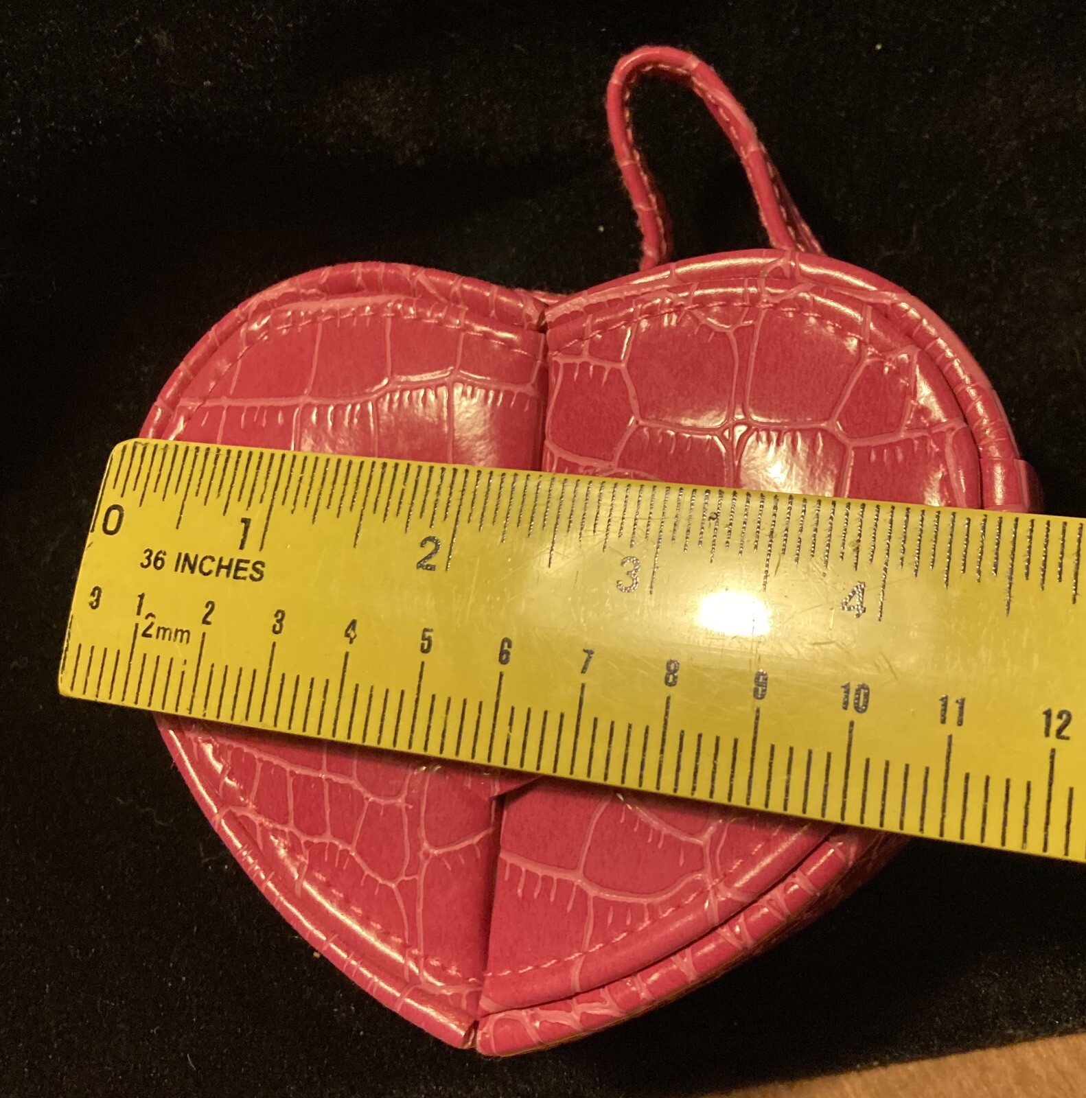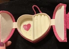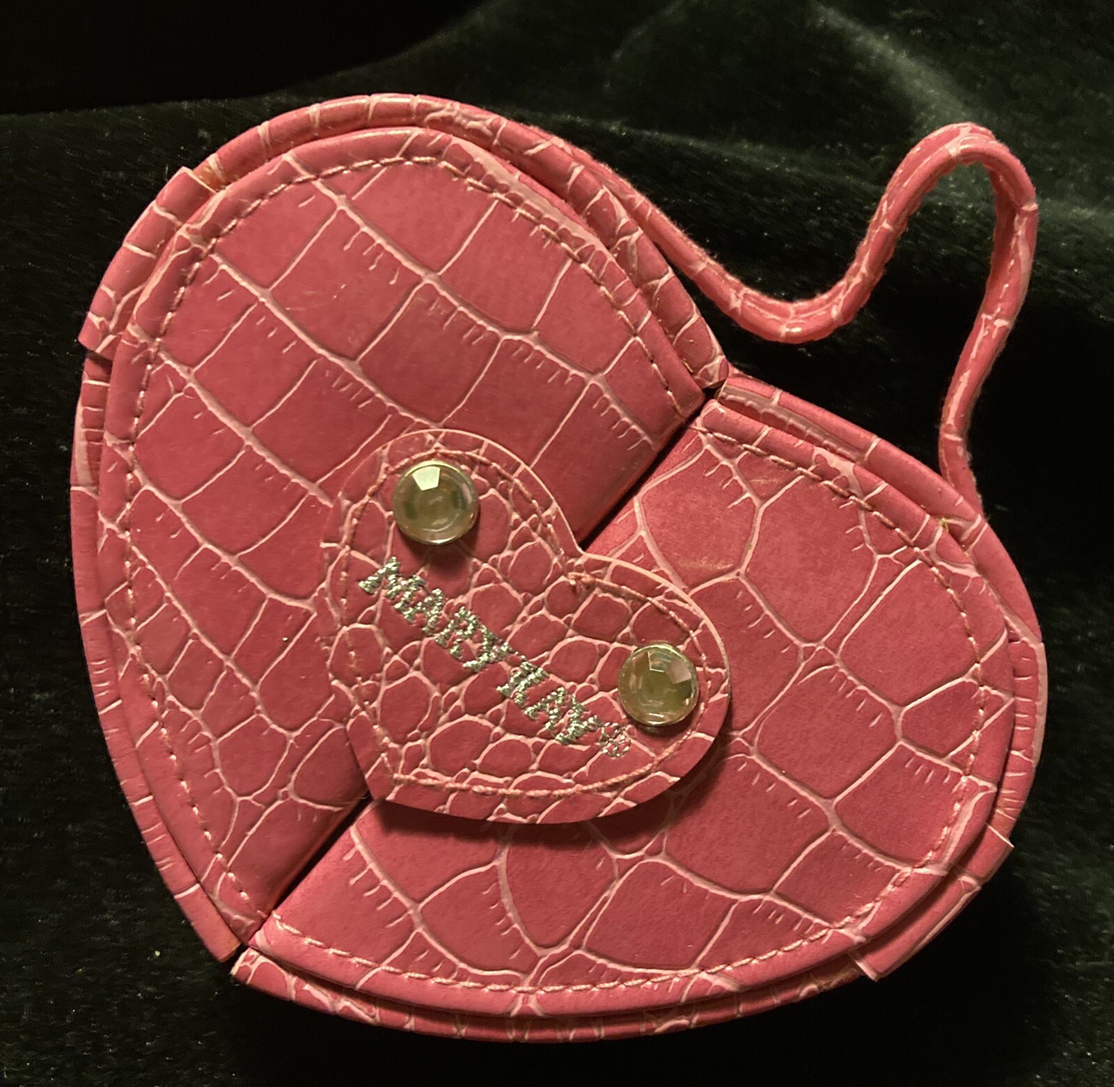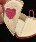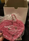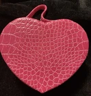 Ring & Earrings Case Jewelry Box - Pink Faux Crocodile Leather Heart Shape NOS. New Old Stock from the early 2000s. Please look at all the photos for specific details. This originally could not be purchased only earned. Limited Edition ~ Retired. With snap bling closure. Great gift for Bride or Bridal party, to tuck a ring in to give. For traveling use. And for beautiful decor on dresser. QUESTIONS ARE WELCOME PRIOR TO PURCHASE ~ returns are not accepted. This is a worn and or used or LONG stored item - NOT A NEW item - visible flaws and imperfections are documented within the photos. This is sold AS IS. We are downsizing and slowly listing items from our family and parents and grandparents households and outbuildings.