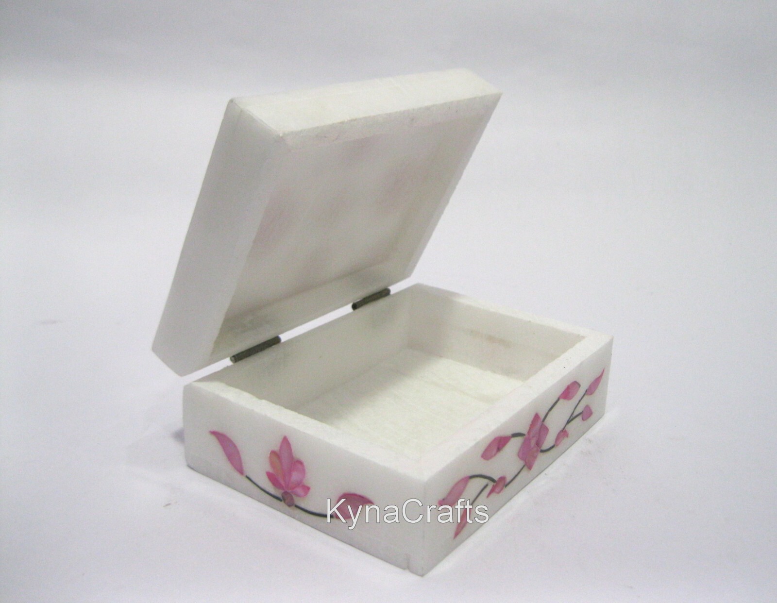 Pink MOP Inlaid Rectangle Marble Jewelry Box 4x3 Inches Bracelet Storage