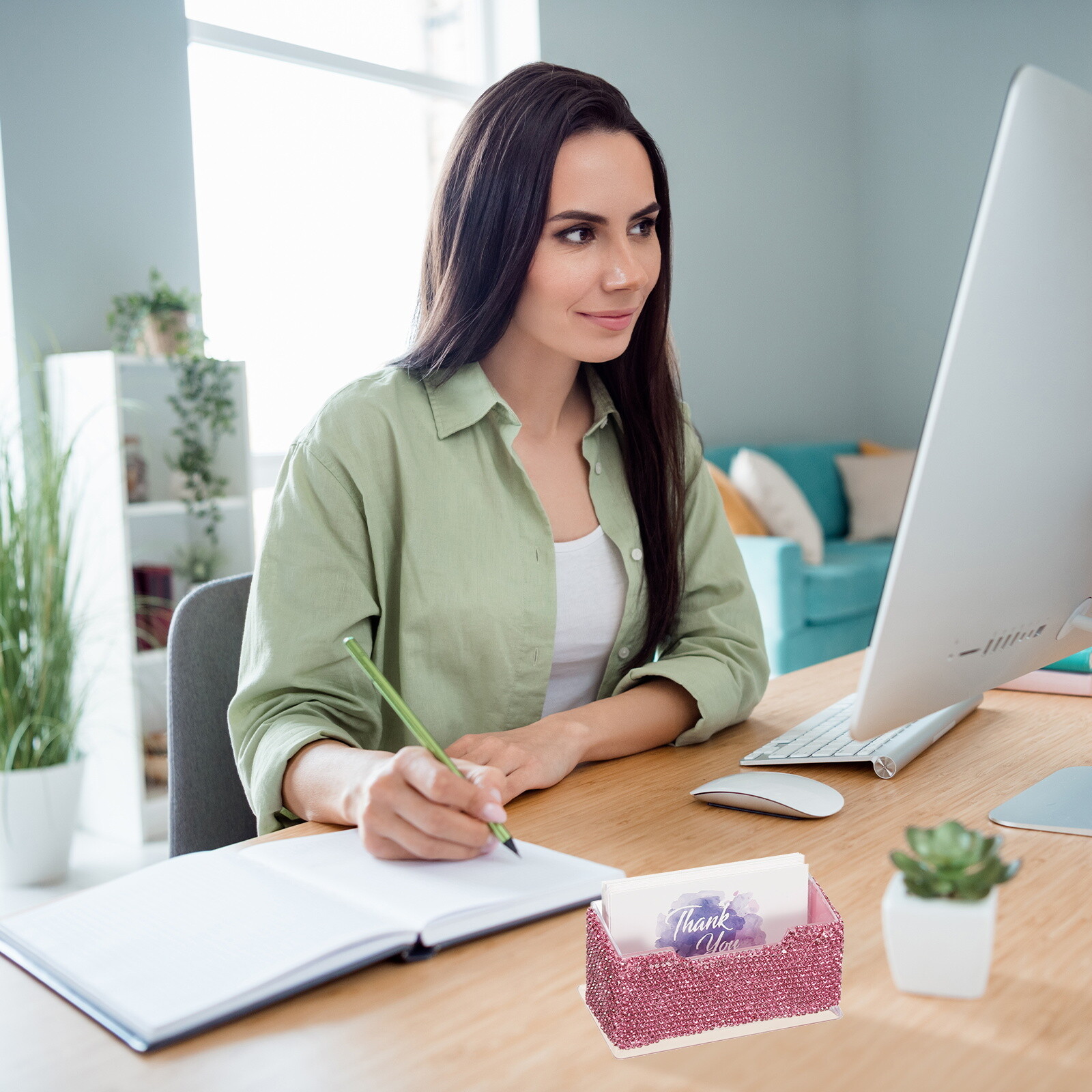 Document Durable MaterialMade of thickened acrylic, this business card holder is strong, durable, and unbreakable. It provides stable support for your card. The edges are polished round and smooth, not hurting hands.Single Pocket CapacityThe shine business card holder size is 4.1*1.8*1.8 inch(105*45*45mm). The single slot compartment can hold up enough standard-size business cards. Providing ample space for organizing your business cards.Visible with Convenient DesignThe design of this business card holder allows for easy visibility of the contents, making it easy to find and retrieve the right card quickly. The design ensures that each card is neatly arranged, keeping your desk organized and tidy. These features make the business card holder a good addition to any office or workspace.Stylish DesignThis business card holder adopts the integrated design of European style and arc, which is more fashionable and beautiful. Designed to add a touch of elegance to your desk or office space. This business card holder creates a minimalist, sophisticated look that will complement any decor.Widely ApplicationThis business card holder is not only perfect for storing business cards but also suitable for holding other types of cards such as game cards and star cards. It is a great organizational tool and decoration for offices, homes, exhibitions, trade shows, conferences, and more. Rhinestone Business Card Holder, 2Pcs Business Card Display Stand Pink Durable Material Made of thickened acrylic, this business card holder is strong, durable, and unbreakable. It provides stable support for your card. The edges are polished round and smooth, not hurting hands. Single Pocket Capacity The shine business card holder size is 4.1*1.8*1.8 inch(105*45*45mm). The single slot compartment can hold up enough standard-size business cards. Providing ample space for organizing your business cards. Visible with Convenient Design The design of this business card holder allows for easy visibility of the contents, making it easy to find and retrieve the right card quickly. The design ensures that each card is neatly arranged, keeping your desk organized and tidy. These features make the business card holder a good addition to any office or workspace. Stylish Design This business card holder adopts the integrated design of European style and arc, which is more fashionable and beautiful. Designed to add a touch of elegance to your desk or office space. This business card holder creates a minimalist, sophisticated look that will complement any decor. Widely Application This business card holder is not only perfect for storing business cards but also suitable for holding other types of cards such as game cards and star cards. It is a great organizational tool and decoration for offices, homes, exhibitions, trade shows, conferences, and more. Hot Item Payment 1.We accept eBay payment . 2.Payment must be received within 7 business days of auction closing. Shipping 1.We ship to your eBay or Paypal address. Please make sure your eBay and Paypal address is correct before you pay. 2.Items will be shipped within 1-3 business day when we received payment. 3.Delivery time depends on destination and other factors. Description Policy Rhinestone Business Card Holder, 2Pcs Business Card Display Stand Pink Durable Material Made of thickened acrylic, this business card holder is strong, durable, and unbreakable. It provides stable support for your card. The edges are polished round and smooth, not hurting hands. Single Pocket Capacity The shine business card holder size is 4.1*1.8*1.8 inch(105*45*45mm). The single slot compartment can hold up enough standard-size business cards. Providing ample space for organizing your business cards. Visible with Convenient Design The design of this business card holder allows for easy visibility of the contents, making it easy to find and retrieve the right card quickly. The design ensures that each card is neatly arranged, keeping your desk organized and tidy. These features make the business card holder a good addition to any office or workspace. Stylish Design This business card holder adopts the integrated design of European style and arc, which is more fashionable and beautiful. Designed to add a touch of elegance to your desk or office space. This business card holder creates a minimalist, sophisticated look that will complement any decor. Widely Application This business card holder is not only perfect for storing business cards but also suitable for holding other types of cards such as game cards and star cards. It is a great organizational tool and decoration for offices, homes, exhibitions, trade shows, conferences, and more. Hot Item Payment 1.We accept eBay payment . 2.Payment must be received within 7 business days of auction closing. Shipping 1.We ship to your eBay or Paypal address. Please make sure your eBay and Paypal address is correct before you pay. 2.Items will be shipped within 1-3 business day when we received payment. 3.Delivery time depends on destination and other factors.