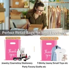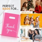 12x15 inch Thank You Merchandise Bags: Pink Thank You Bags with Handle, made from 1.85 mil recyclable plastic material, are durable and ensure repeated use. These Pink Thank You Gift Bags are ideal for Small Business Stores. Our Boutique Bags are perfect for your small business in retail stores, boutiques, birthday parties, weddings and trade shows. Ideal for a variety of products such as crafts, artwork, books, notebooks, documents, clothing, jewelry, cosmetics, skin care, toys, light groceries, desserts, breads, cookies, and other items. Show your appreciation with these Thank You Bags. Package Contains: 12x15 inch Thank You Merchandise Bags *30 【Thank You Retail Bags】The pink Thank You Merchandise Bags are emblazoned with a prominent white "Thank you" logo, giving Retail Shopping Bags for Small Business Stores a stylish look. Impress your customers and grow your business with these beautiful Plastic Shopping Bags. 【Plastic Shopping Bags with Handles】These Reusable Gift Bags have sturdy, comfortable handles that are die-cut for ease of use and a comfortable grip that won't overstretch or break. Leave your customers with a comfortable shopping experience. 【Wide Range of Uses】These Thank You Gift Bags are ideal for Small Business Stores. Our Boutique Bags are perfect for your small business in retail stores, boutiques, birthday parties, weddings and trade shows. Ideal for a variety of products such as crafts, artwork, books, notebooks, documents, clothing, jewelry, cosmetics, skin care, toys,light groceries, desserts, breads, cookies, and other items. Show your appreciation with these Thank You Bags. 【What You Will Get】30 pack Goodie Bags measure 12x15 inches. Pink Plastic Thank You Bags with Handle, made from 1.85 mil recyclable plastic material, are durable and ensure repeated use.