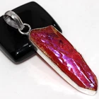 Pink Titanium Aura Quartz 925 Silver Plated Gemstone Pendant 2.3" JW