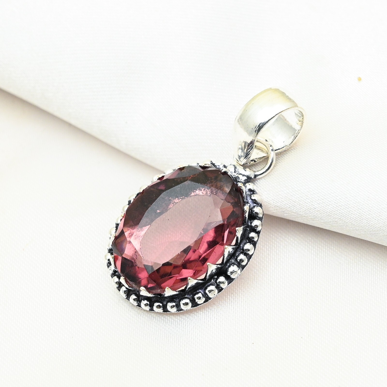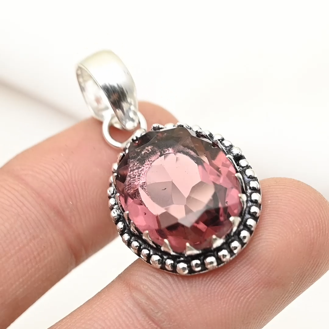Pink Tourmaline Pendant Gemstone Handmade 925 Sterling Silver Jewelry