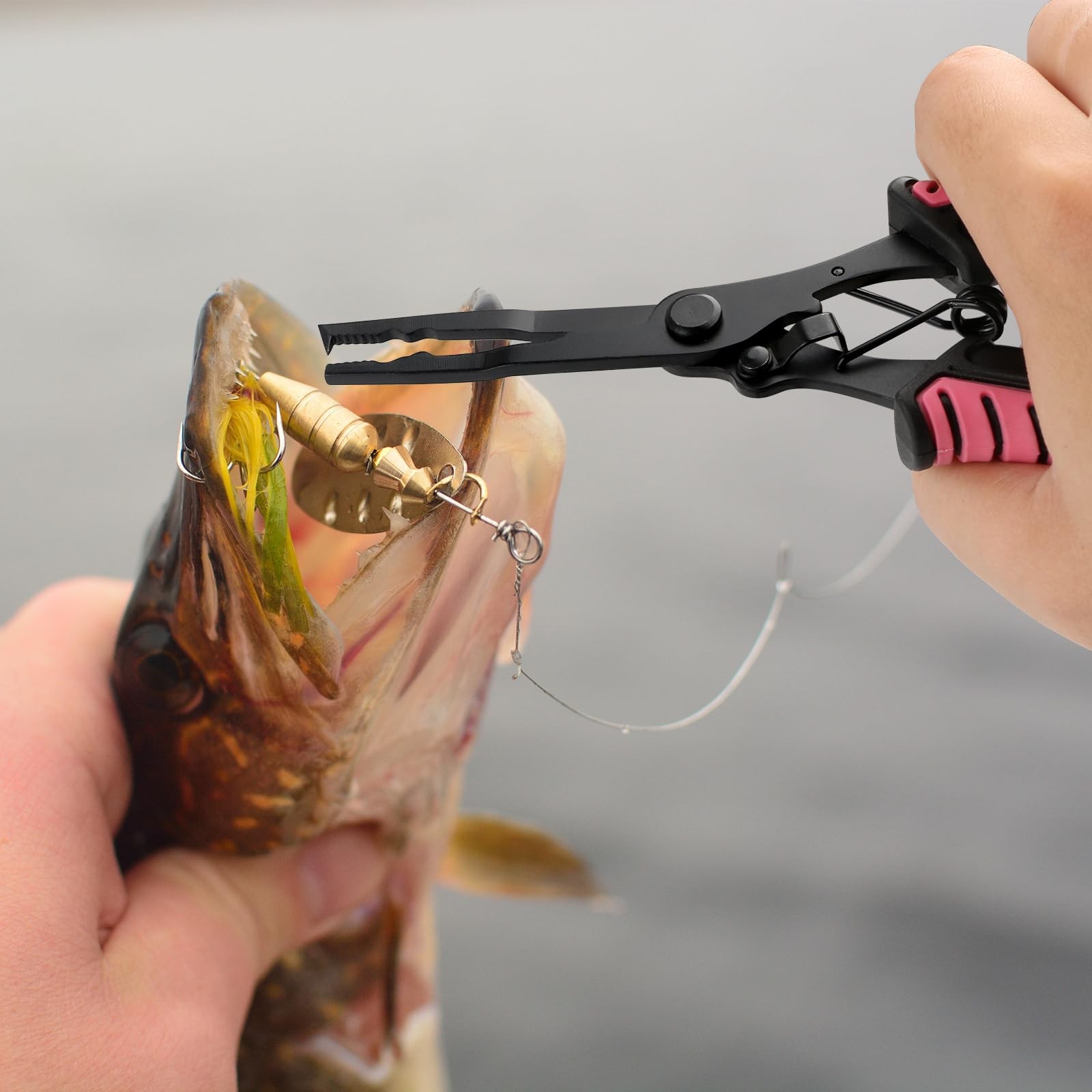 Fishing Pliers Fish Lip Gripper Fishing Tool Kit Muti-Function Saltwater Fishing Line Cutter Hook Remover with Sheath Lanyard, Fly Ice Fishing Gear Fishing Gifts for Men Women (Pink & Black) MULTI-FUNCTION FISHING PLIERS - The needle nose design can be used to effortlessly deep to reach into toothy fish, can be used as hook remover, press and crimp, split rings, line cutter, tying knots and adjusting lures, etc SALTWATER FISHING PLIERS - The 7-inch fishing pliers are made of premium 420 stainless steel coated with a tough corrosion resistant coating, solid and rust-resistant, designed for long term performance, making it an optimal choice for fishing lovers POWERFUL FISH LIP GRIPPER - The thickened two-piece jaws and built-in strong spring lock firmly and seamlessly, wide opening, easy to grip handles and quick release lever, one hand operation to grip, easy to catch the big fish and improve fishing efficiency COMFORTABLE TO GRIP - With ergonomic texture rubber handle, provide a firm hold to grip, non-slip grip design is completely fit hands and no problem at wet situation, a helpful tool for fishermen. Each tool has a rope to hang for storage or to prevent loss while in use PERFECT GIFT FOR ANGLERS - The fishing tackle kit includes fishing pliers with sheath and coiled lanyard, the fish lip gripper with nylon lanyard, perfect for outdoor saltwater and freshwater fishing. Ideal gifts for your friends and family on Father's Day, Mother's Day, Valentine's Day, Christmas Day, or Birthday Muti-Function Fishing Pliers Fish Lip Gripper, Fishing Tools Kit Features Fishing Pliers can be used as hook remover, press and crimp, split rings, line cutter, tying knots and adjusting lures, etc. Fish Lip Gripper with thickened two-piece jaws and built-in strong spring lock firmly and seamlessly With ergonomic texture rubber handle, provide a firm hold to grip when removing hook and split ring One hand operation to grip, easy to catch the big fish Suitable for saltwater and freshwater fishing Suitable for beginners and advanced Specification FISHING PLIERS Material: 420 Stainless steel Color: Pink, Red Length: 7inches/18cm Weight: 3.2oz/91g FISH LIP GRIPPER Material: 304 Stainless steel Color: Pink, Red Length: 7.87inches/20cm Weight: 3.3oz/94g Package Content 1 x Fishing Pliers 1 x Fish Lip Gripper Shipping We offer FREE shipping on all orders! We ship within Three business days of payment, usually sooner. We use a selection of shipping services such as UPS, FedEx, USPS etc. We only ship to the lower 48 states, no APO/FPO addresses or PO Boxes allowed. Local pickups and combined shipping options are not provided at this time. Return You can return a product for up to 30 days from the date you purchased it. Any product you return must be in the same condition you received it and in the original packaging. Please keep the receipt. Payment We accept payment by any of the following methods: PayPal Please pay as soon as possible after winning an auction, as that will allow us to post your item to you sooner! Feedback Customer satisfaction is very important to us. If you have any problem with your order, please contact us and we will do our best to make you satisfied. Contact Us If you have any queries, please contact us via ebay. We usually respond within 24 hours on weekdays. Please visit our eBay store to check out other items for sale! Thank you for shopping at our store.