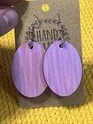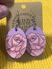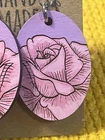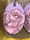 These Pretty Pink Rose Flower Earrings are a soft & romantic addition to any outfit. . Handmade in the United States, these dangle/drop style earrings feature a beautiful etched flower made of wood in an oval shape, with a brass hook closure for easy wear. . The nickel-free design ensures Hypoallergenic properties, making them suitable for sensitive ears. . The delicate pink & lavender colors add a pop of sweet color to your ensemble, perfect for adding a touch of floral flair to your look. . The last photo is of the backs of the earrings.