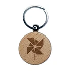 Pinwheel Toy Chinese New Year Engraved Wood Round Keychain Tag Charm