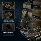 3D Puzzle for Adults Moveable LED Pirate Ship Decorations with Detailed Interior DETAILS 3D Puzzle for Adults Moveable LED Pirate Ship Decorations with Detailed Interior Style: LED Pirate Ship Material Paper and EPS Foam Board (with LED accessories) Brand CubicFun Style LED Pirate Ship Number of Pieces 293 Theme LED World's Great Architecture (Expert) About this item Enjoy The Adventurous Spirit: Hoist The Jolly Roger and Set Sail. Adventure on the high seas awaits with this LED 3D pirate ship model inspired by the Queen Anne's Revenge, the historic vessel that carried the notorious pirate Blackbeard on his conquests across vast seas. 2021 Upgrade Master Series Puzzles: New technology upgrade of CubicFun Pirate Ship, the openable hull access to detailed interior. 1:95 scale simulation Queen Anne's Revenge added 32 plastic deck guns will enhance the assembly experience. Craft and LEDs Upgrade: The simulated texture of the deck makes the visual experience more realistic. The 17 Large Warm Lights Beads will brighten your puzzle kits every night. It makes you feel like you’re in the Caribbean at night. 4H+ Assembly Experience: Pirate Ship included 293 pcs made of EPS foam board that you just need to assemble it step by step with the detailed 3D illustrated instructions. The material is flexible and solid to drift on the Sea through the storm. Build Model Size: 25.2 x 10.2 x 26.8 inches. 14+ years old recommended. Symbolic Centerpiece for Home and Office: The fascinating history of the Queen Anne's Revenge with this fabulous pirate ship model. Place one upon your office desk, or in any room of the house will add the thrill of the high seas excitement to your life. CubicFun Moveable LED Queen Anne's Revenge Pirate Ship with Detailed Interior Puzzles for Adults and KidsThe Black Pearl is a fictional ship in Pirates of the Caribbean. In the screenplay, we can easily recognize the Black Pearl by her distinctive black hull and sails. This turns out to be an advantage in more than one way. Not only do the black sails act as a sort of intimidation tactic, but the Pearl crew can put out the deck lamps for added stealth at night. Now you can get this beautiful 3d puzzle Queen Anne’s Revenge Blackbeard's pirate ship for your collection. You can find many details of the model and removable the hull will access the detailed interior. It’ll make a perfect gift for home or office decorator, boat enthusiast, or passionate collector. Unique Gift for Families & Friends - CubicFun 3D model are great for everyone age 14 to 99. These are perfect gifts for birthdays or as party favors. These are also wonderful prizes for yourself. Assembly Steps: -Follow the instruction on the booklet to building your puzzle. Each puzzle piece is numbered. -Punching out all the interlocking holes before assembly is advised. -Detach pieces you need by step of illustration can help you clearly identified every piece during the assembly. -The card slot is designed for the alignment of the wire and it also can be fixed during installation. Tips: -Pour your patience into the puzzle, don't force to interlock any two pieces/components. -Every puzzle piece has both sides and can be put into only one direction. Please keep the correct side of the pieces facing outward. -Assemble every section of the model just need your clever brain and hands, no glue or tools needed.