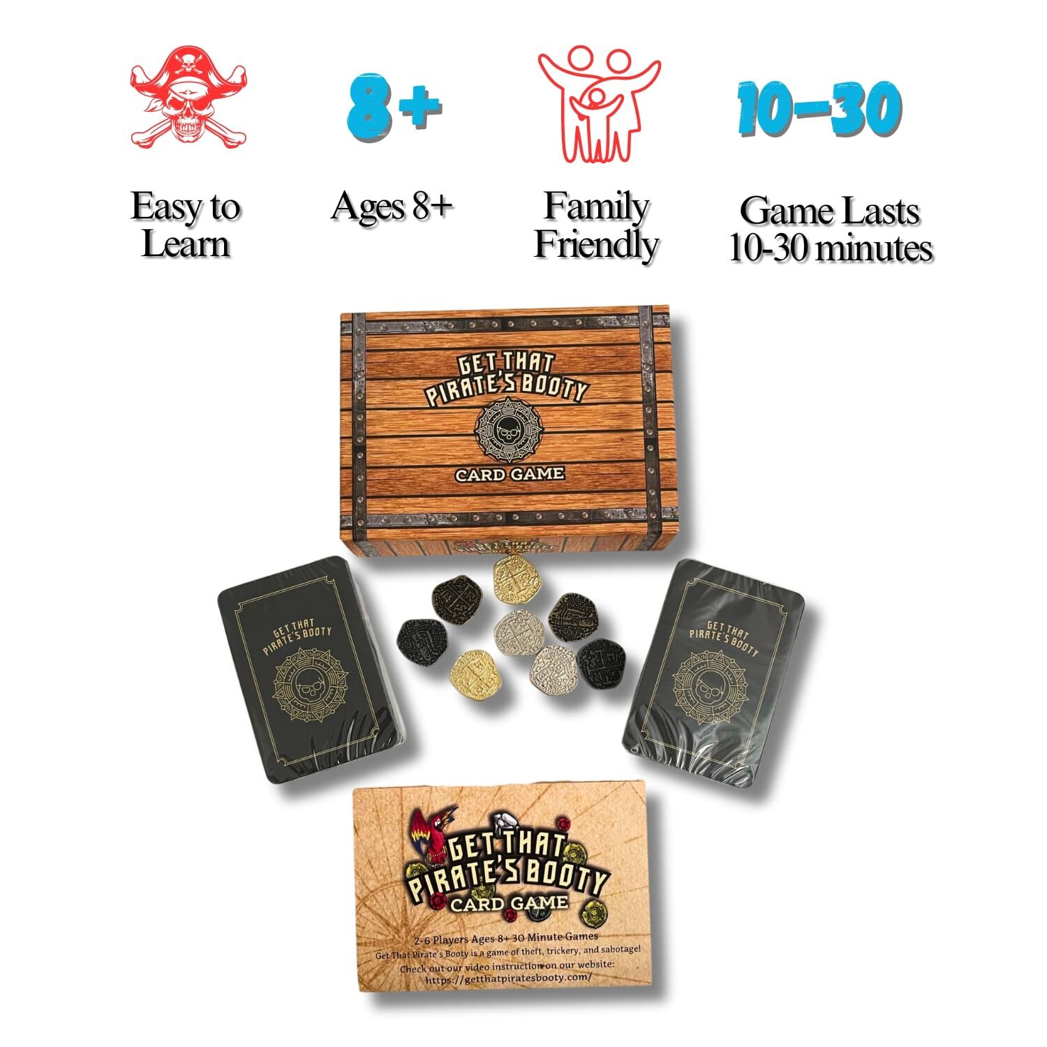 Get That Pirate's Booty Card Game, Fun 2-6 Player Family-Friendly Card Game for Adults, Teens, & Kids a Fun Pirate Themed Game and Good Stocking Stuffers Gift Ideas A GAME OF THEFT, TRICKERY, AND SABOTAGE TO SEE WHO THE BEST PIRATE: Great Holiday gift idea or stocking stuffer HOW TO WIN: Be the first player to collect 3 sets of 4 treasures or collect all four pirates ships to win. FAMILY FRIENDLY GAME NIGHT: If you are looking for a fun family friendly game, Look no further. EASY TO LEARN: Card game for the whole family you will always want to play another round. EASY TO PLAY: Can be played with 2-6 players, games are typically between 10-30 minutes long. Shipping We offer FREE shipping on all orders! We ship within Three business days of payment, usually sooner. We use a selection of shipping services such as UPS, FedEx, USPS etc. We only ship to the lower 48 states, no APO/FPO addresses or PO Boxes allowed. Local pickups and combined shipping options are not provided at this time. Return You can return a product for up to 30 days from the date you purchased it. Any product you return must be in the same condition you received it and in the original packaging. Please keep the receipt. Payment We accept payment by any of the following methods: PayPal Please pay as soon as possible after winning an auction, as that will allow us to post your item to you sooner! Feedback Customer satisfaction is very important to us. If you have any problem with your order, please contact us and we will do our best to make you satisfied. Contact Us If you have any queries, please contact us via ebay. We usually respond within 24 hours on weekdays. Please visit our eBay store to check out other items for sale! Thank you for shopping at our store.