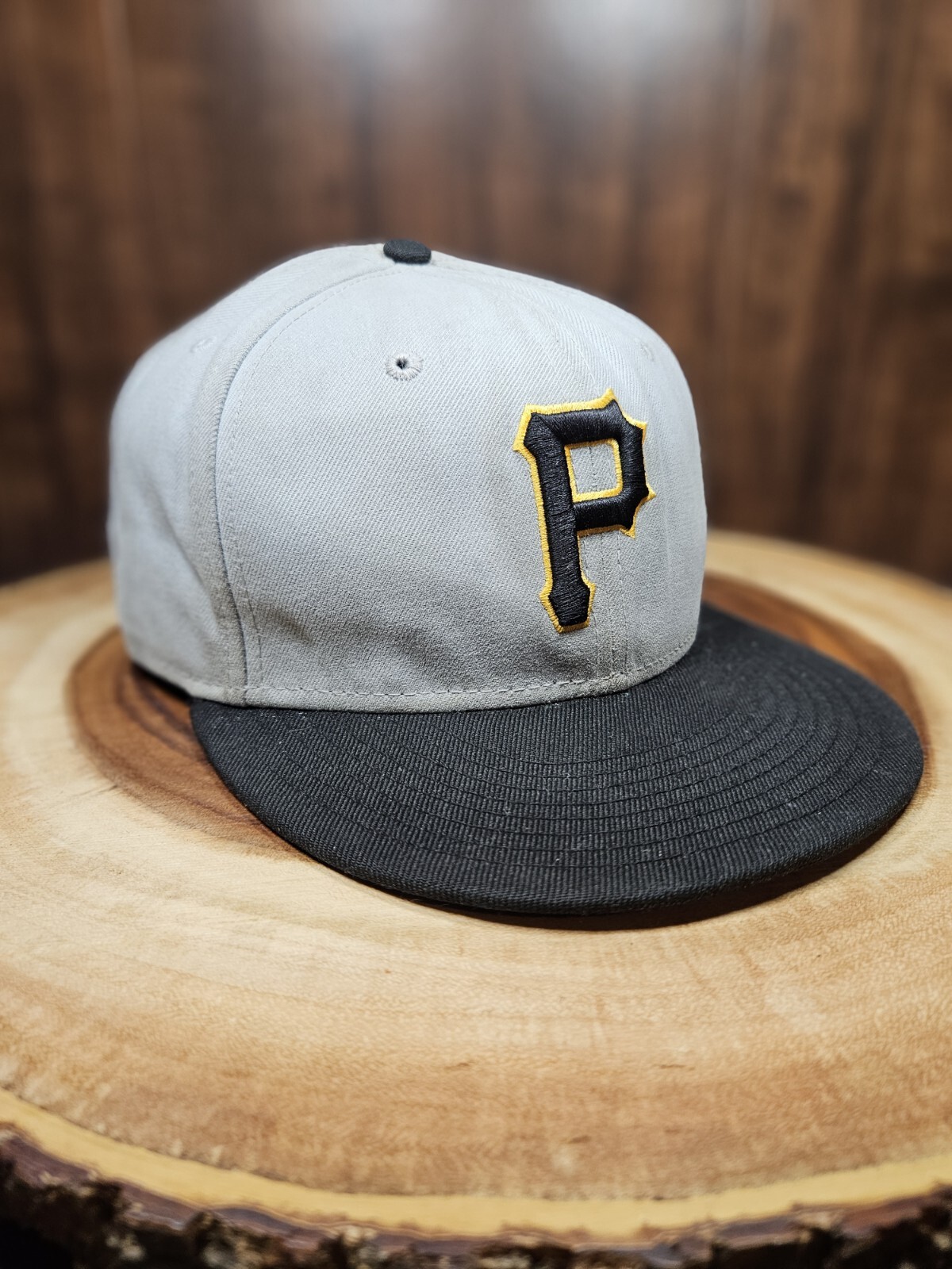 The product is a New Era 59Fifty fitted hat in gray, size 7 5/8. It features a solid pattern and is designed for men. The hat is suitable for various occasions such as baseball games, travel, parties, casual outings, workwear, and business events. It is a baseball cap with a theme centered around MLB Baseball and Sports, specifically the Pittsburgh Pirates team. The hat is made with a fitted design and does not have a vintage look. This is a used hat...i bought it this way...it needs to be cleaned and has a soft bill