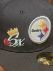 Show off your love for the Pittsburgh Steelers with this stylish New Era 59Fifty fitted hat cap in size 7 1/2. This black baseball cap features solid pattern and is perfect for any occasion, whether it's a football game, party, or even for casual workwear. The cap is adorned with patches celebrating the team's 6X World Champs victories, making it a must-have for any sports fan. The cap is made for men and is ideal for those who appreciate streetwear and NFL football. It is a vintage-free item and is part of the clothing, shoes, and accessories category. The cap is also fitted, ensuring a comfortable and perfect fit. Get your hands on this cap and show your support for the Pittsburgh Steelers!