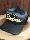 Crafted for fans and fashion enthusiasts alike, the Pittsburgh Steelers Script New Era Feature 59Fifty Snapback Adjustable Hat Cap is a versatile addition to any wardrobe. This black baseball cap features a solid pattern that exudes a sleek, streetwear vibe, while the NFL football team's script adds a touch of sports pride. Its adjustable snapback ensures a comfortable fit for all head sizes, making it a practical choice for various occasions, from casual outings to business meetings or even a day at the ballpark. The cap's durable construction and timeless style make it an ideal accessory for travel, parties, or simply stepping out in style. With its New Era branding, the hat represents both quality and trendiness, effortlessly complementing a range of looks and outfits. Whether you're representing your team at the game or just embracing everyday sporty elegance, this cap fits the bill.
