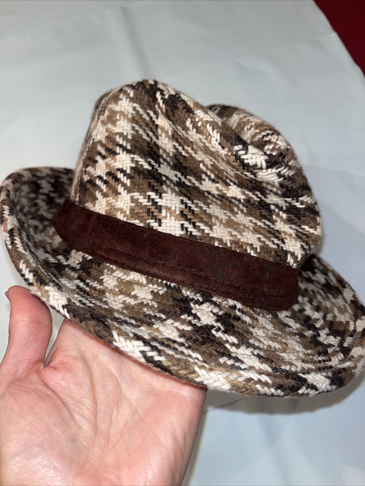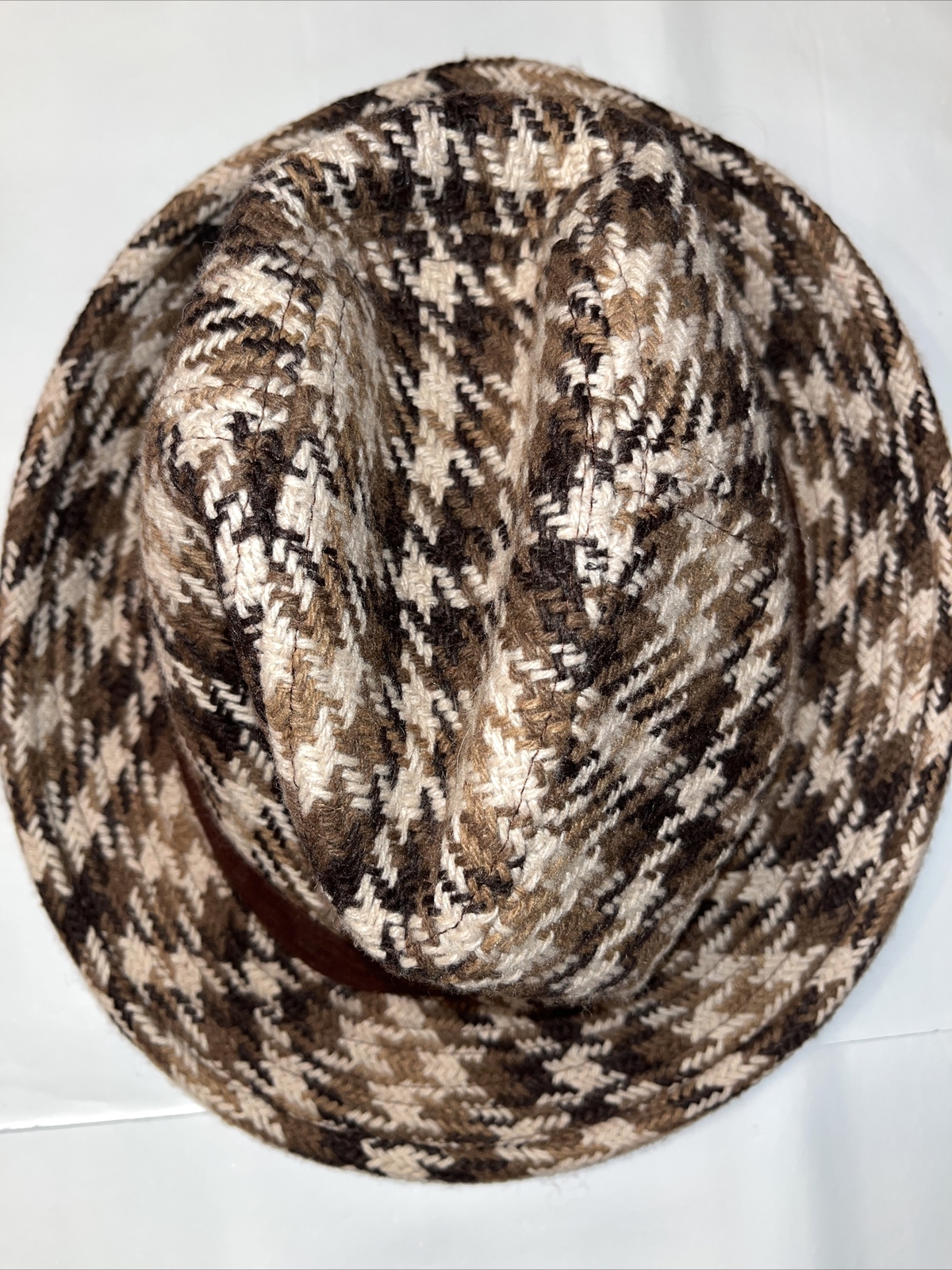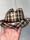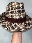 Houndstooth woven heavy cotton blend Fedora Hat detective private eye investigator Sherlock hat Unisex Men Women Tags removed but feels like high quality materials Classic Hat - classy Sherlock Holmes looking Wide brim Trilby Panama Gangster Cap. See pictures for measurements and details Ships out fast No flaws See my other hats See my other listings for more mens and womens clothing and shoes and accessories