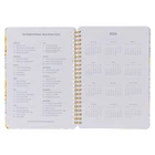 2024 Make Today a Wonderful Day Weekly Planner The front cover of the weekly planner features a teal vertical band adjacent to a white band covered in florals and leaves. Bright yellow daisies that pop with color spill over onto the teal section, where the sentiment is displayed in multi-font white lettering. The interior pages feature a full-page year-at-a-glance view of 2024, a list of public holidays, and space to record personal information, followed by weekly planning pages for each week of the year. Every weekly planning page features each day of the week with a lined space to record appointments or notes. A weekly Scripture verse is included to inspire and motivate you and dot-grid pages in the back of the planner provide space for creative note-taking. The back of the planner also has room to record contacts. The bronze-toned wire binding makes this a sturdy planner that can open flat and fold over easily. Start your day with happy and positive thoughts when you open your schedule to take on the errands and appointments recorded on the pages of the 2024 Make Today a Wonderful Day Weekly Planner, then share your positive outlook by giving the 2024 Make Today a Wonderful Day Weekly Planner as a New Year's Gift or Christmas Gift to a teacher or student. ♥ Title: 2024 Make Today a Wonderful Day Weekly Planner ♥ 12-Month Planner (January 2024-December 2023) ♥ Yellow Daisies On A Teal And White Background ♥ Sturdy Softcover Planner ♥ Inspirational Scriptures Verses For Each Week ♥ Psalm 46:10 ♥ List Of International Holidays ♥ Bronze-Tone Wire Binding ♥ Small Month At A Glance Calendar ♥ Dot-Grid Pages For Notes And Lists ♥ Space To Record Personal Information ♥ Space To Record Contact Information ♥ Inspirational Scripture Verse For Each Week ♥ One-Color Page(s): 118 ♥ Public Holidays List ♥ Size: 8.4" x 6.1" x 0.6" (213 x 155 x 115mm) ADDITIONAL INFORMATION *********************************** PROCESSING & SHIPPING ♥ ALL items are “MADE TO ORDER” ♥ FULFILLMENT TIME 2 to 7 BUSINESS days ♥ STANDARD SHIP TIMES (if NO delays) 3-5 BUSINESS days AFTER fulfillment ♥ If planners are needed by a specific date please notify us BEFORE placing your order to ensure you will receive the item in a timely manner RETURN(S) / EXCHANGE(S) ♥ Returns, Exchanges and Cancellations are NOT ACCEPTED ♥ Contact us with ALL questions BEFORE purchasing ♥ We will NOT Refund/Replace items marked as delivered (if package has been marked as delivered but you have not received it, check with your local post office)