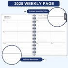 2025 Planner - This weekly and monthly planner 2025 covers 12 months from January 2025 to December 2025. And size of the planner 2025 is about 8" x 10". Monthly Overview - Planner 2025 have equal blocks every month, including Julian dates and USA holidays markings, and notes on the right side of the planner. The 2025 planner have plenty of writing space so that you can record important things this month and write down your plans. Weekly Overview - Weekly spread include space to write your daily schedule, have plenty of space to detail appointments and keep track of all days clearly with the weekly view. Stylish Design - Neat design of the 2025 planner suitable for offices, schools and meetings. Planner effectively realize the management and planning of daily tasks and long-term goals. Functional - 8" × 10" Planning Pages | Flexible Cover | Marked 12 Monthly Tabs | Quick Reference Information | Yearly Overview | Holidays | Contacts | Twin-wire Binding | Premium Thick Paper. Product Description 2025 Planner with Weekly & Monthly Pages, 8" x 10" Specification of Planner 2025 Size of this 2025 planner: 8'' x 10'' Timeline of this planner 2025: January 2025 - December 2025 Functional Designs of this 2025 weekly and monthly planner: Flexible Cover | Twin-Wire Binding | Marked Tabs | Thick Paper Inner Pages of this planner: Weekly & Monthly Pages | Contacts | Quick Reference Information | Yearly Overview | Holidays Cover Design of the 2025 planner: Neat design is more generous and versatile, suitable for offices, schools, meetings Detail Pages of Planner 2025/Calendar 2025 Monthly Management Ruled daily blocks Marked USA holiday, Julian date Monthly Tabs Micro Calendar ( Past, Present and future) Guide Each Week Mark the completed items Marking of holidays Reference calendar Printed Monthly Tabs Additional Pages 2025-2026 Yearly overview 2025-2027 Holidays Contacts Details of the Planner 2025 Twin-Wire Binding 12 Monthly Tabs Premium Thick Paper Flexible Cover with Stylish Word Let's organize your life in style with this gorgeous planner! The multifunctional planner can be used for work or life planning utilising the intimacy of pen and paper. Be creative and have fun use it as an opportunity of self expression by bullet journaling, writing diary entries or drawing for escapism the possibilities are only limited by your imagination.