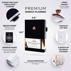 Return Policy Fast Delivery Trusted seller Planner Premium Edition – Undated Luxurious Weekly & Monthly Planner to Increase Productivity and Hit Your Goals – Organizer – Start Anytime, A5, Lasts 1 Year, Black (Weekly) Product Description ✓ LUXURIOUS, PREMIUM EDITION – Planner Premium is a weekly planner that combines maximum functionality and premium-quality design and materials. It has many amazing features, such as elegant light layouts and lots of space for writing daily tasks and appointments. This premium weekly addition also has extra quarterly goals sections and an improved monthly review to help you get the most out of planning. ✓ UNDATED & ORIGINAL GIFT - A planner that any man or woman would really appreciate! Weekly Premium Edition comes undated, unlike most dated planners, you can start using it at any time of the year without wasting a page. By design all 12 months run in bulk and are separated from 54 weekly spreads, use 3 bookmarks to flip between weekly and monthly spreads. Vegan leather hardcover, thick 120gsm pearl white paper, pen holder, illustrated user guide and 6 sheets of stickers. ✓ STAY FOCUSED & INCREASE PRODUCTIVITY - Planner will help you create a vision for your life, define your short and long-term goals in each area of your life, and incorporate these goals into your monthly, weekly, and daily agenda. Many customers tell us that they have already become dramatically more productive, organized, and stress-free after only 1 week of using this goal planner. T is no going back. Stop procrastinating and start turning your big dreams into reality! ✓ FREE QUICK START GUIDE & STICKERS - This planner and organizer for women and men comes with a detailed step-by-step illustrated user guide for a quick start, unlike other planners that will leave you wondering how to use them after the purchase. It also comes with 6 sheets of colorful planner stickers and in a premium gift box keepsake packaging. T is absolutely no reason for you to look any further. ✓ GUARANTEE & RETURNS - goal setting planner is d to work, or we will give you your money back no questions asked! We will exchange or refund your item asap if you're having ANY TYPE of quality issues or if for any reason you’re not completely satisfied with your planner. Simply reach out to us via an message for a hassle-free refund. Shipping Returns Payment Shipping Shipping is FREE to all addresses other than APO/PO boxes in the lower 48 states. All our stock ships from US-based warehouses. Shipped via USPS or UPS (depending on location and package weight) Unless stated otherwise, all orders will ship within 24-72 hours of your payment being processed. Check our feedback to see the great reviews of FAST shipping we offer. Returns Seller does not accept returns Payment We currently accept payment via eBay managed payments only. Once payment is cleared, we will dispatch your shipment within 1-3 business days. Please refer to the "Shipping" tab for more information regarding shipping speed to your destination.
