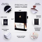 Planner Weekly Premium Edition ✓ LUXURIOUS, PREMIUM EDITION – Planner Premium is a weekly planner that combines undated layouts, advanced planning tools, and exciting extras for the ultimate planning experience. ✓ GIFT BOX, STICKERS & USER GUIDE – This planner comes with a gift box, 6 sheets of stickers, and a user guide to ensure you make the most of using it. It has a vegan leather hardcover, thick 120gsm paper, a pen holder, and a pocket for loose notes. ✓ STAY FOCUSED & INCREASE PRODUCTIVITY – This life planner will help you create a vision for your life, define your short and long-term goals in each area of your life, and incorporate these goals into your monthly, weekly, and daily agenda. ✓ MASTER EFFECTIVE TIME MANAGEMENT – This planner and organizer for women and men is undated and has detailed weekly planning pages, monthly calendars, and monthly progress reviews to easily manage your time and make the most of every day. ✓ 60-DAY MONEY-BACK GUARANTEE – We will exchange or refund your goal setting planner if you aren’t satisfied with your life planner for any reason. Reach out to us via message to refund your life organizer planner.
