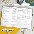 PRO SIZE & PREMIUM EDITION - Planner PRO Premium combines a spacious A4 format; advanced planning tools; undated weekly, monthly, and budgeting sections; and premium edition extras for the ultimate planning experience. UNDATED & UNIQUE LAYOUTS - An important feature of this planner is that it is undated; so, unlike most dated planners, you can start using it at any time of the year without wasting a page - it’s totally up to you to fill in the months and dates. WEEKLY, MONTHLY & FINANCIAL PLANNING - This life planner combines spacious weekly planning pages, monthly calendars, goal-setting tools, and monthly budgeting sections to plan not only your day-to-day life, but also your finances. GIFT BOX, STICKERS & USER GUIDE - This time management planner comes with a gift box, stickers, user guide, eco-leather hardcover, thick 120gsm paper, lay-flat binding, elastic band, pen loop, 3 bookmarks, and pocket for loose notes. 60-DAY MONEY-BACK GUARANTEE - We will exchange or refund your goal setting planner if you aren’t satisfied with your goal journal planner for any reason. Reach out to us via message to refund your undated weekly planner.