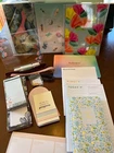 Bundle of great products! -3 Snap in covers - Erin Condren - covers with backs. As pictured 2 are in plastic brand new and 1 is slightly used 7.25 x 9.25 in. -1 Week priority notepad - Erin Condren - like new, never used - 11 x 4 in. -1 This week's focus notepad - Erin Condren - like new, never used - 6 x 8.5 in -2 Today notepad - Cultivate What Matters - Rainbow a few pages missing, Teal used but over half left, 8.5 x 5.5 in. -1 Balance notebook - Erin Condren - new, unused, see photo for inside, all pages the same expect the color changes 5.75 x 8.5 in. -1 Little by Little Journal - Cultivate What Matters - unused, see photo for inside, all pages laid out the same but quote changes, 4.25 x 7 in. -1 Work in progress notepad - Erin Condren - sticky note style, unused, see photo for inside, all pages same color 2.75 x 4.5 in. -1 Curved notepad - Erin Condren - unused, not sticky 3.25 x 5.75 in. -4 mini lined notepads - Well Planned Gal - unused, not sticky, see photo for detail, 2.5 x 5 in. -3 skinny lined notepads - Well Planned Gal - 2 unused,1 half left, not sticky, see photo for detail, 3 x 8 in. -4 planner bands - Well Planned Gal - all unused I have had the fit chunky A5 books and 8.5x11 books -1 Clear dry erase board and marker - Erin Condren 6.5 x 7.25 (never used marker but it does look cheap, not sure if it will work) -1 Enamel Pin - Cultivate what matters
