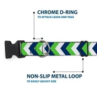 Further Details Title: Plastic Clip Collar Chevron White/Bright Green/Navy NARROW-Large 9.5-14.5" Condition: New Release Date: 03/16/2017 Description: Vibrant and bold, this beautiful, polyester dog collar is made to show off your dog's unique style through all the seasons. With an overengineered plastic buckle and strong D-ring, this durable collar can hold up to whatever your dog can dish out. This product is officially licensed by Buckle-Down. Item Height: 25mm Item Width: 12mm Item Weight: 17g Age Level: All Life Stages Brand: Buckle-Down Designs Color: Multicolor Item Length: 381mm Material: Nylon Number of Items: 19702 Type: Dog Collar Plastic Clip Buckle Dimensions: 15 x 0.5 x 1 inches; 0.6 ounces Size: 1/2" Wide - Fits 9.5-14.5" Neck - Large Closure: Buckle MPN: W35557-0.5-L Dog Breed: All Breed Sizes Fits 9.5-14.5" neck size and is 1/2 inch wide. Vibrant and bold, this beautiful polyester dog collar is made to show off your dog's unique style through all the seasons. With an overengineered plastic buckle and strong D-ring, this durable collar can hold up to whatever your dog can dish out. This product is assembled in the USA by Buckle-Down and is officially licensed by Buckle-Down. Matching leads/leashes available Missing Information? Please contact us if any details are missing and where possible we will add the information to our listing.