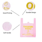 50 ct 0.6 mil disposable Plastic grocery bag for shopping Unique Design: Our plastic grocery bag is designed by ourselves, giving customers a good impression and building your business line. Grocery Bag Quantity: 150 ct pink plastic shopping bag in one bag, perfect for to-go food bags. T Shirt Shopping Bag Size: 12"x19" with handle included, flat size that can change when open. Premium Material: Made from 1.25 mil polyethylene granules, suitable for food storage and sturdy enough for most occasions. Versatile Use: Can be used for retail, grocery storage, business shipping, and more, with enough thickness for most occasions.
