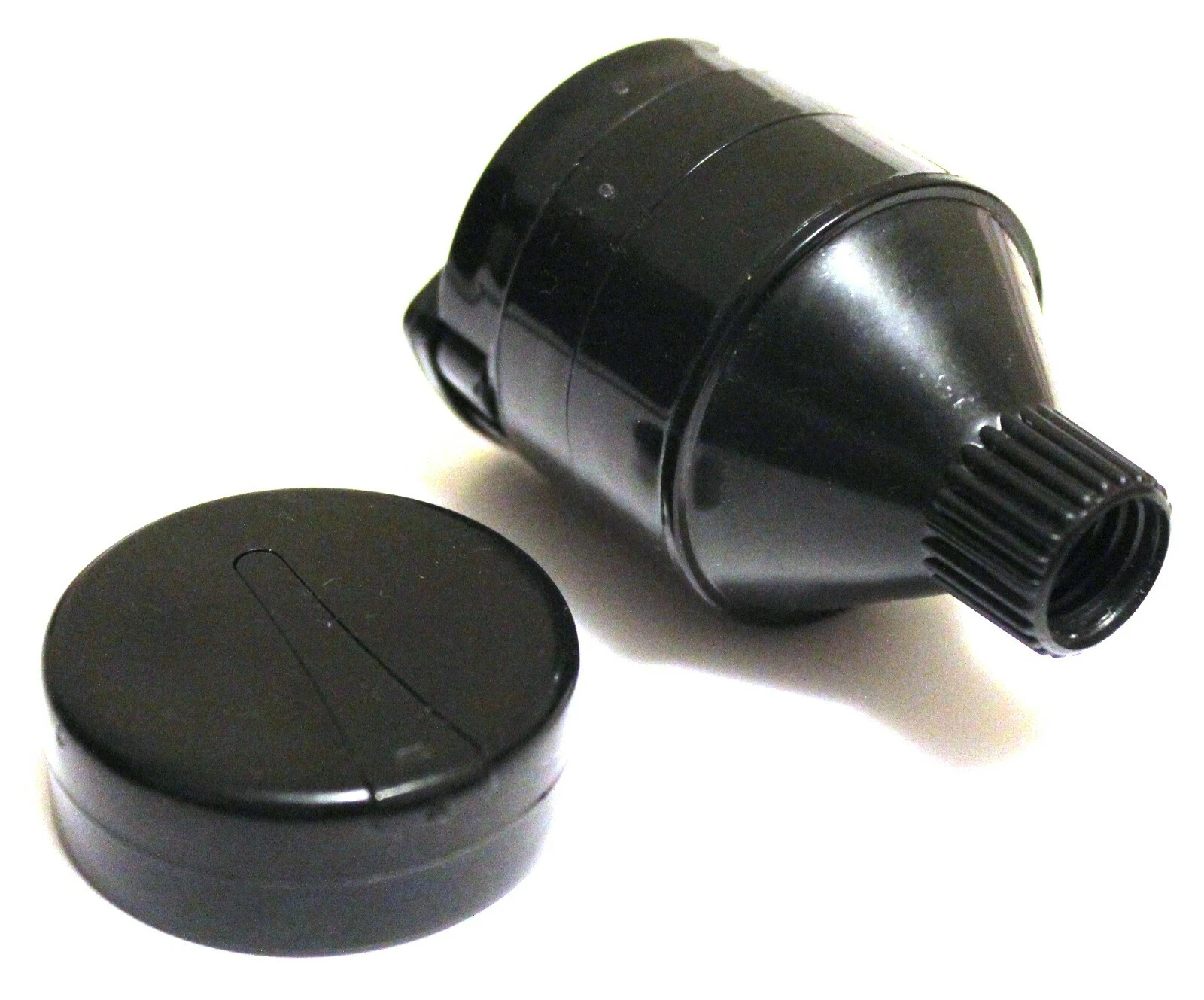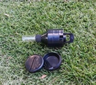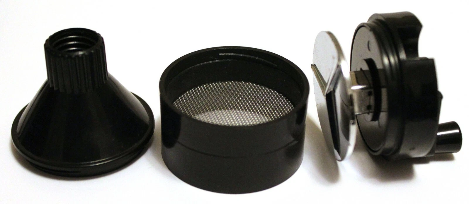 - Made of plastic in black color, Diameter 40mm (1.6") and height is 60mm (2.3") - Color: Black - Material: Screen is made of Stainless Steel 304 screen, body and handle are made of Plastic. - Not suitable for seeds and chunky size, it is for light job for grinding coarse powder to fine shape. - Do not run it empty due to high friction. Its body structure is made of plastic please use it for light job, if you need more durability please choose our metal one.