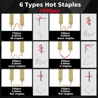 200W Cordless Plastic Welder: Our plastic welder has a built-in 200W powerful motor and 5000m-Ah rechargeable battery. Higher output current and faster heating speed. This plastic welding kit is useful and efficient for anyone who enjoys DIY or needs a reliable plastic repair tool. USB Rechargeable Cordless Design: The new rechargeable plastic welder kit allows you to work without cords or outlets. It can be carried around and solves the problem of tangled wires, which is suitable for more working scenarios. Plastic welder kit can meet your welding requirements to the maximum. Safe and Easy: The high-quality pure copper tube design of the plastic repair welder kit can effectively avoid burns at high temperatures. The comfortable handle is not fatiguing even during prolonged use. LED lighting makes working in the dark more convenient. With the spring-loaded switch, you can learn how to operate in a few seconds. Widely Used: Hot stapler plastic repair kit is suitable for connecting plastic parts that won't stick. Such as car bumper cracks, dashboards, lamp shades, tool boxes, plastic housings, daily use plastics, etc. The six types of hot staples are applicable to large cracks, bending cracks, internal corner cracks, external corner cracks and other damage. Plastic welding kit Includes: 1x 200W plastic welder, 1050PCS hot staples (150pcs 0.6mm M staples, 300pcs 0.8mm wave staples, 200pcs 0.6mm wave staples, 100pcs 0.8mm flat staples, 100pcs 0.6mm flat staples, and 200pcs 0.8mm V staples). 1 x knife, 1 x pliers , 1 x USB charging cable, and comes in a suitcase.
