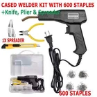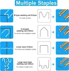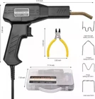 Feature: Strong for shock and twisting after repairing. Stainless steel staple will not rust. Wavy staple design for maximum load. Quick and easy operation. No training required. Learn to use in seconds. Ergonomic designed to fit into the palms of your hand. Staple weld into the plastics quick and easily. The nice way for repairing most modern products which are made of plastics. Specifications: Material: ABS Input Current: 0.5A. Output Voltage: 0-50V Output Current: 0-15A Output Power: 0-50W Overheat Protection. Machine Size: 225 * 155 * 40mm / 8.* * 6.1 * 1.6in. Power Core Plug Cable Length: 1.30m (4.3ft). Weight: 498g / 1.10lb Package size: 285 * 195 * 45mm / 11.2 * 7.7 * 1.8in Package weight: 922g / 2.03lb Packing List: 1 * Plastics Welding Machine 150 * Flat Staple 150 * Outside Corner Staple 150 * Inside Corner Staple 150 * Waves Staple 1 * Plastic Spreader Plate 1 * Carry Box 1 * English Instructions
