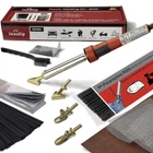 Deluxe Plastic Welding Kit includes everything you need for DIY repairs on a variety of thermoplastic surfaces. This 80-Watt welding iron heats up to a maximum temperature of 525°F and can easily handle repairs on various plastic materials. Great for Car Bumper, Headlight Tab, Dashboard, Kayak, Canoe, and Riding Toy repairs. The Welding Kit includes: Airless Plastic Welder, 17 Pc Aluminum Repair Tape, Sandpaper, 20 PolyPlaz Rods, 40 PP Rods, 2 Triangle Welder Tips, 2 Welder Boot Tips, 4 Reinforcing Stainless Steel Wire Mesh, 1 Iron Stand, 1 Wire Brush. UL Certified - Your safety, and the safety of your family, is our number one priority. Our welder, factory and the process have been tested, approved, and certified by Underwriters Laboratories (UL). Great Savings with Quick DIY Repairs of bumpers and other car parts - kayaks, canoes and boat parts, ATVs, plastic tanks, containers and bins, outdoor furniture, plastic toys, and more Deluxe Welding Kit Includes Everything You Need - 17 Pc Aluminum Repair Tape, Sandpaper, 20 PolyPlaz Rods, 40 PP Rods, 2 Triangle Welder Tips, 2 Welder Boot Tips, 4 Reinforcing Stainless Steel Wire Mesh, 1 Iron Stand, 1 Wire Brush UL Certified - Your and your family's safety is our top priority. welders and the factory have been tested, approved, and certified by Underwriters Laboratories (UL) Airless Plastic Welder (110-120V, 60Hz Max) heats up to 525F - Temperature can vary by work area temperature Two Different Easy-to-Swap Welder Tips - Use the Boot tips and PP rods to repair small broken headlight tabs and the triangle tips with Polyplaz Black rods to repair car bumpers