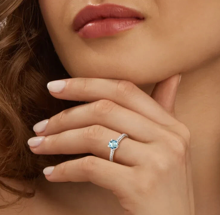 Platinum 950 engagement ring with 1.14CT blue topaz and moissanite accents