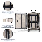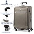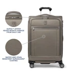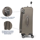 Description Finally, great looking checked luggage that is as functional and durable as it is stylish. The Platinum Elite 25" Expandable Spinner is perfect for medium and long trips, accommodating everything you need, guarding against wrinkles with a built-in suiter and keeping everything organized under a deluxe tie-down system with integrated accessory pockets. Constructed with premium fabrics, leather accents and chrome zippers, this gorgeous bag also features a tip-resistant tapered expansion option that provides up to 2" additional packing capacity. Integrated lock allows TSA authorities to safely unlock and lock suitcase for inspection when needed (default lock code is 0-0-0 to open). For effortless mobility, this 25" suitcase is equipped with our Precision Glide system-eight MagnaTrac, self-aligning, 360-degree spinner wheels guided by an adjustable PowerScope extension handle with patented Contour Grip and rubberized touch points, ergonomically designed to be easy on the hands. Backed by built for a lifetime limited warranty with our trusted companion promise which covers the cost of repair for damage from airline or other common carrier for 1 year. This luggage has PrecisionGlide System that delivers precise control and effortless roll on eight MagnaTrac self-aligning spinner wheels led by a height-adjustable PowerScope handle with comfortable Contour Grip. These suitcases with wheels have drop-in, fold out suiter keeps clothes wrinkle free. Interior tie down system includes built in accessory pockets and TSA compliant, removable quart sized wet pocket for toiletries. Leather top and side carry handles plus bottom cup provide carrying options. Checked luggage with integrated lock allows TSA authorities to safely unlock and lock suitcase for inspection when needed (default lock code is 0-0-0 to open). Supra zipper heads are engineered to resist damage from frequent use and abuse. Large suitcase has tapered expansion design keeps the center of gravity low to help reduce tipping while providing up to 2” additional packing capacity. High-density nylon fabric with DuraGuard coating resists stains and abrasions. Suitcase Case Dimensions: 25 in x 18 in x 11.25 in, Overall Dimensions ( includes wheels & carry handles): 28 in x 18.5 in x 11.75 in, Weight: 9.8 lbs, Volume: 97 L. Limited Lifetime Coverage plus trusted companion promise, which covers the cost of repair for damage from airline or other common carrier for the period the product is owned by the original purchaser or gift recipient. Applicable when purchased as new and after registration.