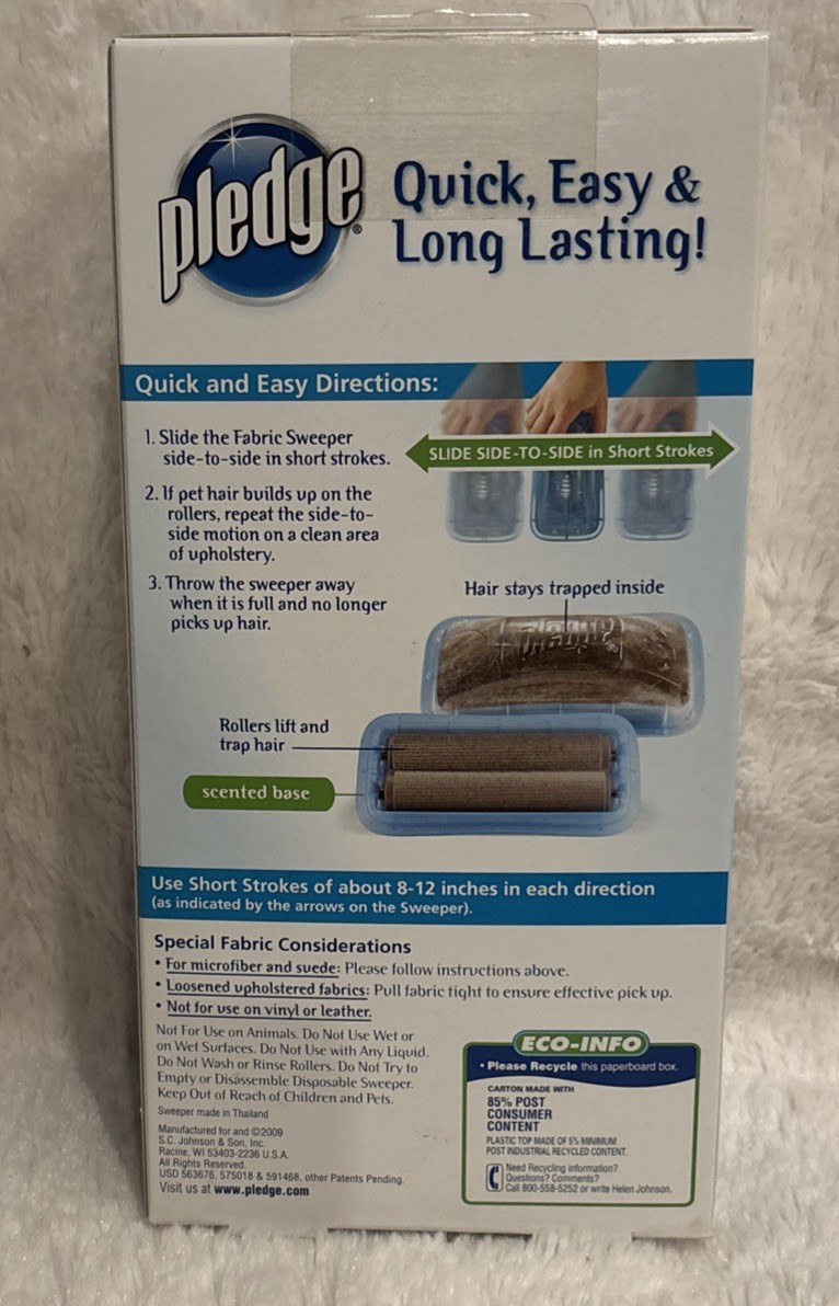 The Pledge Fabric Sweeper is a versatile and convenient cleaning solution for removing pet hair and other debris from fabrics. The disposable design makes it easy to use and dispose of, while the rainshower scent adds a fresh and pleasant aroma to your home. Made from fabric material and featuring a multicolor design, this fabric sweeper by Pledge is a must-have for keeping your fabrics looking clean and beautiful. With its non-toxic formula and convenient rainshower scent, it's a practical and efficient choice for maintaining your household supplies and cleaning needs. Discontinued New in box unopened