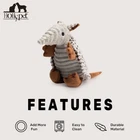 Unique Sound - Hollypet Armadillo Squeak Toys (except 6 inch) make a sound that's not high pitched, but rather a unique and funny grunt sound that your furry friend will love. Unlike noisy bones, ropes, or other normal stuffed plush dog toys Eye Catching Design - Shaped like a cute armadillo, our stuffing dog toy come in multiple colors, allowing you to choose the one that best matches your pet's personality. This dog toy is specially designed for puppy, small and medium dogs. It isn't suitable for extreme strong or aggressive dog chewers Durable and Long Lasting - Made from premium soft materials, our cute plush dog toys can withstand rough play for indoor or outdoor and last for years to come. The textured surface also helps massage and soothe your dog's gums during playtime Active Play, Tossing, and Retrieving - Our cute Armadillo chew toys for dogs can be used for bonding with your puppy, reducing stress or separation anxiety Customer Satisfaction - While no toy is indestructible, we stand by our product. Our design is not for aggressive chewers and large sized dogs, yet, if the toys are damaged within a month, contact us for a replacement. Please supervise your pet during play and ensure they do not ingest the toys Product Description The video showcases the product in use. The video guides you through product setup. The video compares multiple products. The video shows the product being unpacked. Hollypet Dog Chew Toy Add to Cart Add to Cart Customer Reviews 4.5 out of 5 stars 368 4.5 out of 5 stars 368 4.5 out of 5 stars 368 4.0 out of 5 stars 142 3.0 out of 5 stars 16 Price — — $22.99 $ 22 . 99 $12.99 $ 12 . 99 — Indoor/Outdoor ✔ ✔ ✔ ✔ ✔ Exercise&Play ✔ ✔ ✔ ✔ ✔ Training ✔ ✔ ✔ ✔ ✔ Dental Benefits ✔ ✔ ✔ ✔ ✔ Unique Squeaker ✔ ✔ ✔ ✔ ✔ My large breed puppy loves hers! Crazy for the honking squeaker inside. Do you have more products recommend? You can choose from nine different colors and others series provide your dog with a plush toy that keeps them entertained and happy. If you have any questions, feel free to reach out to us. We are always here to help! Which material is inside the tool? Where is product made? Where are the components from? These toys are made in China. It made from premium materials, a textured surface and a plastic honking built-in squeaker.