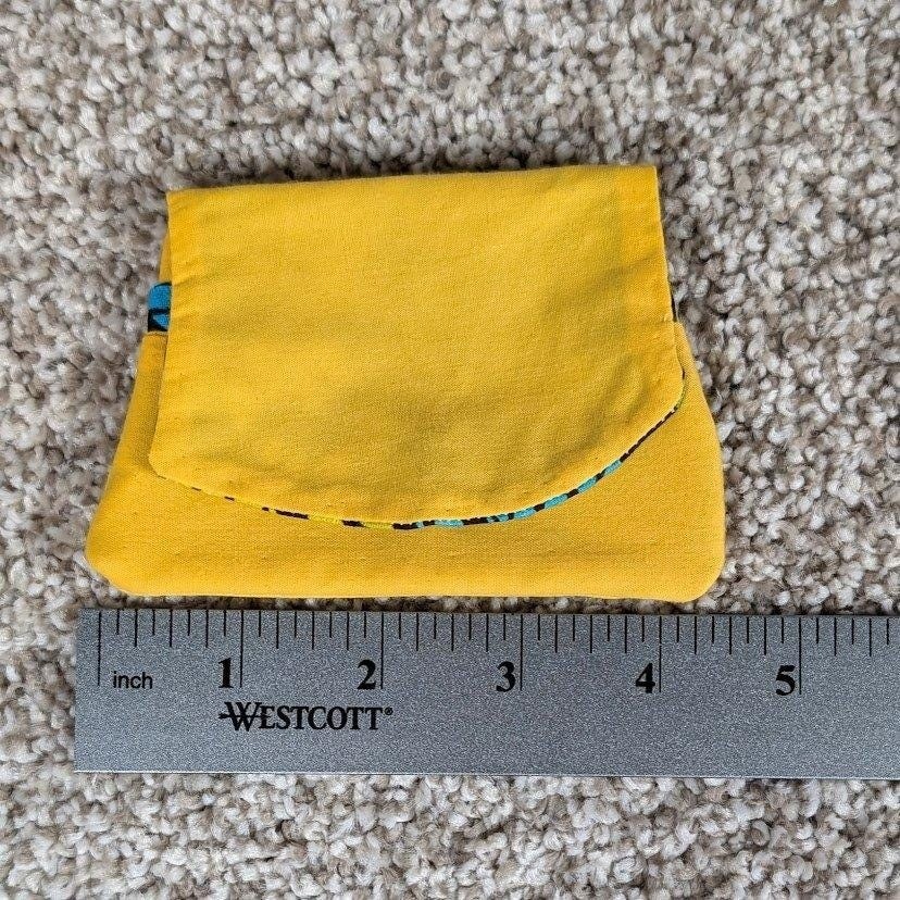 This handy little wallet fits perfectly in your pants pocket. Use it for festivals or concerts when you don't want to carry around a purse. Perfect size for debit cards, ID and some cash. Place a gift card inside and give as a graduation, birthday or Christmas present. It's also the perfect gift for a pet sitter, hair stylist, housekeeper or teacher. Handmade with love with 2 contrasting colors. See pictures for measurements. 100% Cotton - machine washable. From Smoke Free/Cat Friendly Home Keywords: pocket wallet, card holder, small purse, handmade wallet, clutch wallet, yellow wallet, floral wallet, mini wallet, credit card holder, coin purse, fabric wallet, gift for her, travel wallet