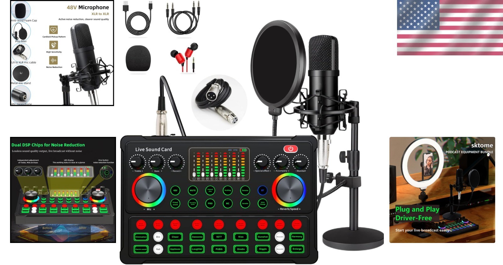 Podcast Equipment Bundle Microphone Voice Changer Mixer for Streaming Video Recording ‹ › ‹ › ‹ › ‹ › ‹ › ‹ › ‹ › ‹ › ‹ › Podcast Equipment Bundle Elevate your podcasting and streaming experience with our all-in-one Podcast Equipment Bundle, designed for both beginners and seasoned creators alike. This comprehensive package features a top-tier 48V XLR microphone, adjustable microphone stand, and a plug-and-play live sound card, ensuring crystal clear sound quality every time you record. Features: Superior Sound Quality: The high-performance 48V XLR microphone captures every nuance of your voice, enhanced by built-in quality pre-amps and phantom power. Crystal Clear Audio: Equipped with a dual DSP noise reduction chip, experience flawless sound quality for all your creations. Rich Sound Effects: Explore your creative side with 4 voice changers and 23 built-in sound effects that guarantee an engaging experience for your audience. Versatile Compatibility: This bundle works seamlessly across various devices including smartphones, computers, and gaming consoles, with support for Windows, iOS, Android, and Mac OS. RGB Lighting Effect: Enhance your visual presence with captivating LED displays that respond in real-time, adding a dynamic touch to your setup. All-Inclusive Kit: Comes complete with a microphone stand, shock mount, pop filter, anti-wind foam cap, cables, and more to get you started right away. Professional Support: Our dedicated team is ready to assist you within 12 hours for any inquiry, ensuring a smooth setup process. Why Choose Our Podcast Equipment Bundle? This Podcast Equipment Bundle is your ultimate solution for creating high-quality content that captivates and engages. With superior sound clarity, a multitude of sound effects, and extensive compatibility across devices, it allows you to express your creativity without limits. Whether it's for podcasting, live streaming, or video content creation, this versatile kit guarantees a professional finish. Don't wait! Take the first step toward transforming your audio productions with our Podcast Equipment Bundle today! Shipping Free & Fast Shipping - We offer free shipping to most of the USA with a normal delivery time of 3-7 days. However, due to the current situation, additional delivery time (up to 3 weeks) may be required for some items. Alternative Carriers - We may use alternative carriers (e.g. USPS, FedEx, UPS, etc.) to ensure your package arrives safely and on time. Due to the use of multiple carriers, we are unable to provide a tracking number automatically. Handling Time - Orders are processed and shipped within 1-2 business days of receiving cleared payment. Shipping Restrictions - Shipping to Alaska, Hawaii, Puerto Rico, Guam, and other US territories may incur shipping charges or delivery restrictions. Please contact us before ordering, or your order can be refunded/cancelled. State Restrictions - There may be restrictions based on your state of purchase. For example, certain items may not be shipped to California due to state regulations. Contact for Tracking Updates - If you require tracking updates or have any concerns about the delivery of your order, please feel free to contact us, and we will be happy to assist you. Return 30-Day Hassle-Free Returns - We want you to be completely satisfied with your purchase. If you are not, you can return the item within 30 days of receiving it for a full refund or exchange. Easy Return Process - To start a return, simply contact us and we will provide you with a prepaid return shipping label and detailed instructions. Restocking Fee - There are no restocking fees for returns. However, the buyer is responsible for return shipping costs if the return is not due to a seller's error. Refund Processing Time - Refunds will be processed within 5 business days of receiving the returned item in its condition. Payment We accept all major credit cards, PayPal, and Apple Pay for your convenience. Your payment information is secure and encrypted to ensure a safe and seamless transaction. Please complete your payment within 3 days of purchase to avoid any delays in shipping. Feedback Your feedback is extremely important to us. We strive to provide the best products and customer service possible. If you are satisfied with your purchase, please take a moment to leave us a positive review. If you have any concerns or issues with your order, please contact us before leaving negative feedback. We are committed to resolving any problems and ensuring your satisfaction. Contact Us If you have any questions or concerns, please feel free to out to our customer support team. You can contact us through the eBay messaging system. We are available Monday to Friday, 9:00 am to 5:00 pm EST, and we will do our best to respond to your inquiry within 24 hours. Buy it now and enjoy a pleasant shopping experience! Maximum SPL: 78 dB Unit Quantity: 1 Item Weight: 2.23 kg Connectivity: USB,XLR Features: Adjustable Stand,Noise Cancellation,Plug and Play,Voice Changer,LED Display,Built-in Sound Card,Denoise,Rechargeable Battery Form Factor: Handheld Transducer Type: Condenser Diaphragm Size: Medium Suitable For: Gaming Color: Black Polar Pattern: Unidirectional Mount Type: Desktop Microphone Stand