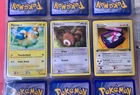 This binder collection has 20 pages which majority are all full (back and front). A total of 300 cards. First 7 pages contain the holos and reverse holos (including stamped cards). Cards come from various sets, from early WOTC like Base/Jungle/Fossil, Neo sets, E-Reader, many EX Era sets, Diamond & Pearl, all the way up to Call of Legends (a lot of D&P era cards in between). So spanning years 1999-2011, with majority falling between 2003-2010. There are only two Japanese cards - Crawdaunt and Golem holos from EX Dragon correlate set (Rulers of the Heavens). There is a page full of Stamped EX era cards. There are 5 pages of E-Readers (mostly Ruby & Sapphire, but also Expedition Base, Sandstorm, and EX Dragon). Also 3 POP Series promos (one is holo- Turtwig), and one 1st edition (Team Rocket Porygon). There are only 9 trainers, and 9 energy cards (it is the last page of binder). Many cards look to be at least LP condition. There are some non-holos with more played wear like MP and HP territory (some have moderate edge wear, light creases, etc). However not too many overall in HP condition, most are in good shape. All E-Readers are in excellent condition, majority are Near Mint. Majority of holos look to be at least LP, some are LP+ or close to NM. Majority of reverse holos look at least LP. Hitmontop might be MP with edge wear and scratching (no creases). Binder is not included but pages will be shipped together securely and safely (wrapped inside a box with tracking). See all photos for details. Let me know if any questions and do not hesitate to reach out (can provide more pictures as needed of specific cards). Cards sold together as is, will not be parted out.