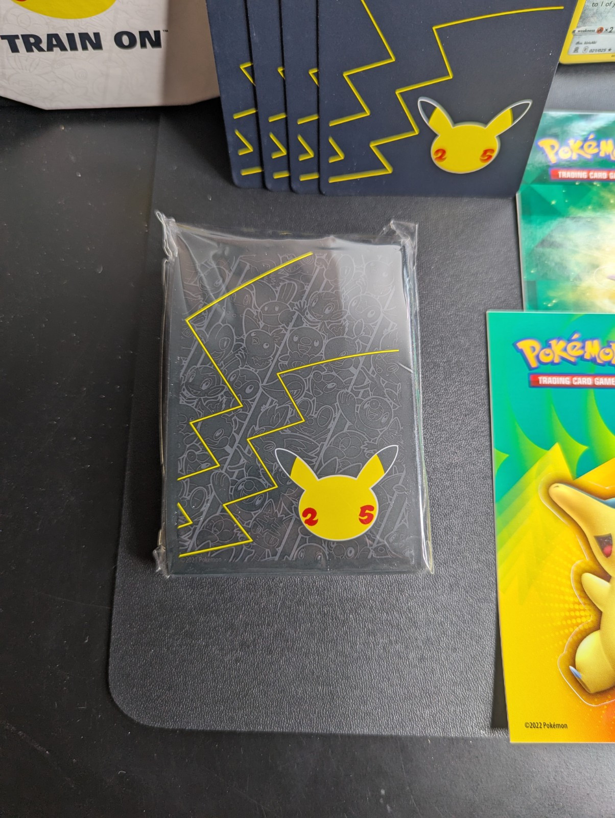 Pokemon Lot of 3 Empty ETB w/ Matching Dividers/Sleeves + Arceus UPC Box + More You will receive everything shown in the first photo. See below: - A total 3 EMPTY Elite Trainer Boxes. - ALL matching dividers (4 per box) and matching sleeves. (Every ETB comes with a matching set of sleeves and dividers.) - (NOT PICTURED) 3 Matching Player's Guide Booklets - EMPTY Arceus UPC box - 2 Sticker Sheets - 1 Arceus Themed Notebook - 1 Mini Portfolio - CELEBRATIONS Holo Bulk ---------------------------------------------------------- Items are in good condition but be sure to review the provided photos for more condition details. ---------------------------------------------------------- This product is a lot of 4 EMPTY ETB boxes from the Pokémon Trading Card Game. The boxes come with matching dividers and sleeves, and come with bonus stickers and other things. You will also get the EMPTY Arceus UPC box. This set is ideal for Pokémon TCG collectors who need storage solutions for their cards, as well as new collectors of all ages! Thanks for looking!