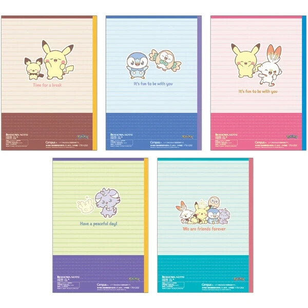 Adorable "PokePeace" Design Featuring Pokémon! Introducing a collaboration between Pokémon and the popular Campus Notebook , known for its innovative dotted ruling that enhances writing precision. This set includes 5 unique designs , making it easy to color-code by subject or purpose. What is PokePeace? In a small town somewhere in the world, there’s a cozy share house where Pokémon and humans live together. Life here is relaxed, free, and filled with simple joys—napping together, throwing parties on special days, and more. It’s a peaceful life with Pokémon. Come and take a peek! Support Beautiful Writing with Dotted Ruling The dotted lines in the ruling help make your notes not only neat but also easier to review later. Features include: Aligning text perfectly from the beginning of each line. Providing markers for diagrams, table borders, and straight lines. Easy alignment when attaching materials to your notes. Maintaining clean, straight writing even for vertical text. Perfect for students and professionals looking to organize their notes efficiently! Product Details Size : Semi-B5 (Per Notebook: Approx. W179×H252×D3.5mm; Package: Approx. W179×H252×D18mm) Weight : Approx. 650g Material : Paper Sheets : 30 per notebook Ruling : B ruling (6mm spacing) with dotted lines, 35 rows per page Binding : Stitched Set Contents : 5 unique designs Made in Japan About Shipping We always send the item with a tracking number. So please place an order without any concern on delivery. You can always track the delivery status.