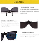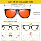 Measure Your Glasses Firstly - This clip on sunglasses measures 5.7in/145mm in total frame width, 5.3in/136mm in inner width, 2.4in/61mm in lens width and 2.0in/51mm in lens height. Please confirm the size of your glasses before purchasing, to make sure it can fully cover your glasses lens Full UV Protection Lens - Remarkable Eye Protection and Comfortable Eye Vision Experience. With high quality UV400 Standard lens-100% UVA&UVB Protection and shatterproof HD Polarized Lense - Anti-glare and reflections, great for driving, fishing and other outdoor activities. Come with a plastic case for you can carry it around at any time Flip Up Design & Easy Application- You can flip it up when going to indoors! And when you go out, you can flip it down, giving you full protections in the sunlight. Just clip on and go! Saving Hundreds of dollars instead of getting new prescription Sunglasses Guarantee - All our customers enjoy 90 Day Money Back Guarantee. Customers can return and get refunded in case the purchasing is not satisfactory for any reason. You have no risk to try and we will provide you the best service