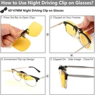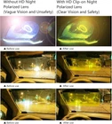 Polarized Clip-on Flip Up Metal Clip Rimless Sunglasses for Prescription Glasses: Description: Polarized HD Yellow lens reduces glares and reflections, great for night driving, and any outdoor activities Ultra lightweight and highly scratch resistant material Lens with UV400 technology offers maximum protection from harmful Light UV Rays! Premium metal alloy clip is non-shrinking, impact and shatter-proof, wear-resisting and scratch-proof Clip on your Prescription Glasses -Fits both metal and plastic frames, no need to buy expensive prescription sunglasses Easy application - Just clip on and go! Great for sunny days, cloudy days, rainy days and nights.