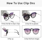 【EASY TO USE】- Clip on your prescription glasses, 180-degree flip does not block the line of sight. Soft rubber covers on the clip protect your prescription glasses from scratching. 【POLARIZED LENS】- The polarized lens with UV400 protective coating can block harmful light UV Rays (including UVA, UVB and UVC) and reduce glares and reflections. With high quality UV400 Standard lens. Restore true color, eliminate reflected light and scattered light and protect eyes perfectly ! 【HIGH QUALITY MATERIAL】- These cat eye flip up sunglasses are made of ultra-lightweight lenses, soft rubber clips, and a 180-degree flip design. It is shatter-resistant, abrasion-resistant and scratch-resistant, durable, and is the perfect gifts for your friend and family. 【PRODUCTS SIZE】- Attention: Please confirm the size before purchase. Lens height: 52mm (2.02 inches), lens width: 53mm (2.06 inches), bridge width: 16mm (0.62 inches), frame width: 131mm(5.1 inches). 【WIDE APPLICATIONS】This fashion clip-on sunglasses over prescription glasses is the perfect choice for driving, fishing, Boating, running, cycling, traveling and other outdoor activities.