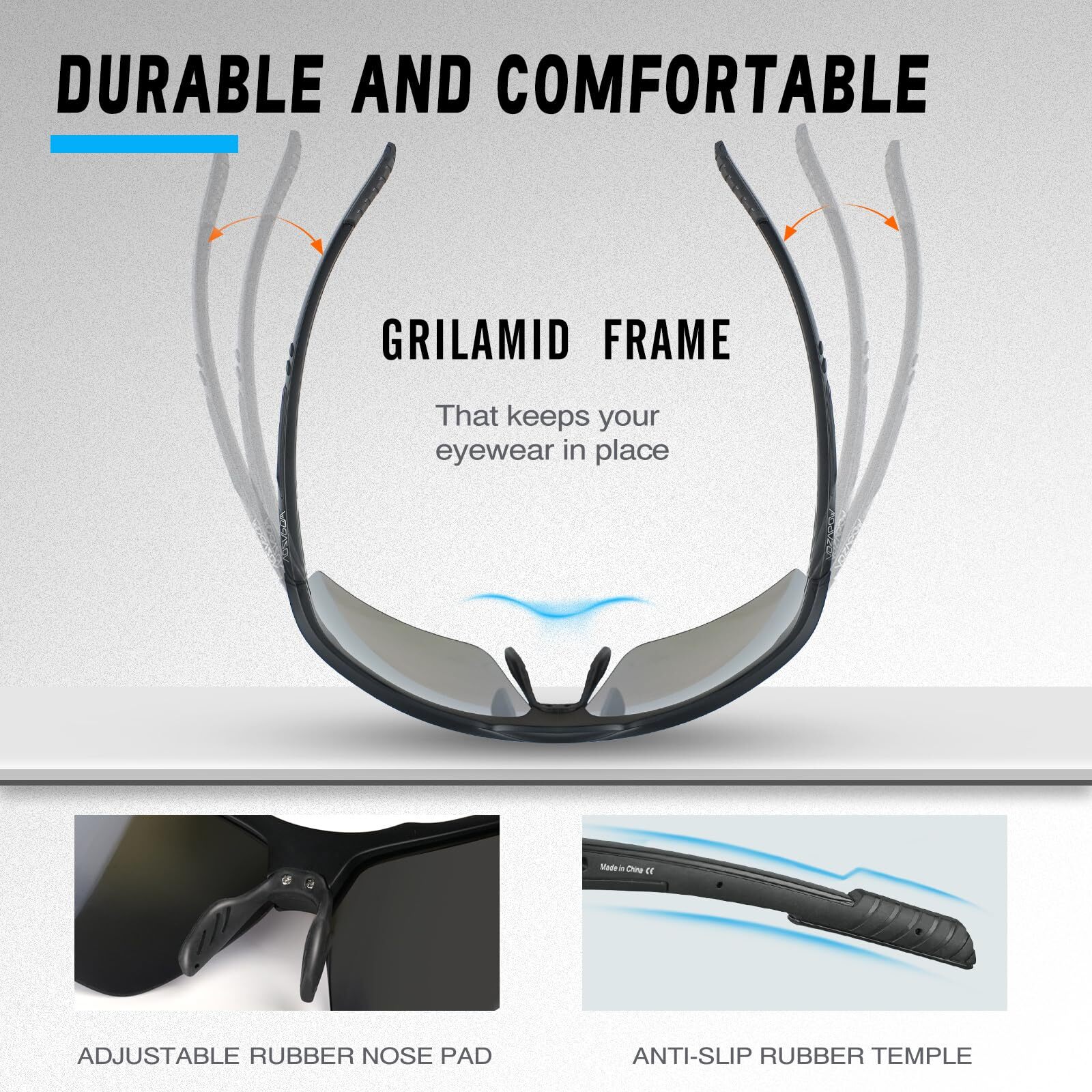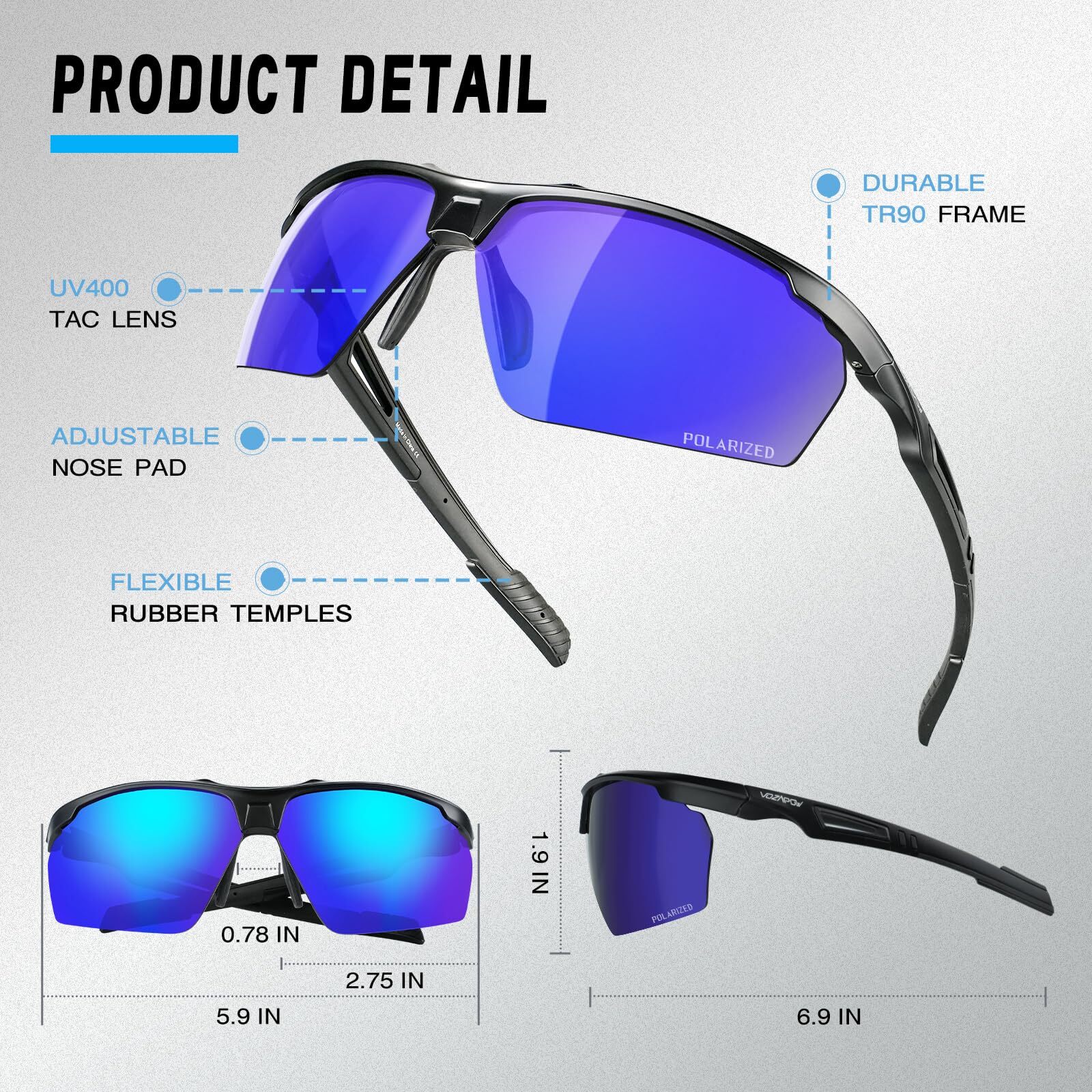 【Style Speaks Volumes】Fishing Sunglasses, with half-frame design and tough lines that outline a sense of lightness and power like the wings of eagles, gives you the precise vision of eagles. Designed for outdoor sports enthusiasts, it combines cutting-edge concepts with high-quality materials to provide top-level protection and stylish appearance, enhancing your sports performance and allowing you to perform at your best. 【UV400 Polarized & HD Vision】Our sports glasses lenses are comparable to high-end sports glasses in optical performance. 1.0mm ultra-thin polarized lenses effectively reduce glare caused by reflected light, relieve eye fatigue, improve visual clarity, make colors more vivid and saturated, and allow you to accurately capture the dynamics of fish. 【TR90 Frame with Excellent Fit】Polarized sunglasses are made of Grilamid TR-90 material, which has excellent flexibility and durability. Even if it is bent by external forces, it can quickly return to its original shape, perfectly adapt to different facial contours, and provide unparalleled wearing comfort. Experience enhanced grip with 's rubber nose pads, ensuring a secure fit even during the most intense workouts or sweaty moments. 【Ideal for Game Changers】Fishing sports sunglasses are versatile and ideal for fishing, running, biking, golf and pickleball. Whether you're fishing on the lake or chasing your personal best on the track, has your vision needs covered. 【LIFETIME WARRANTY】focuses on product quality and customer satisfaction. If you have any quality problems or dissatisfaction after receiving the product, please feel free to contact us and we will solve it for you until you are satisfied!