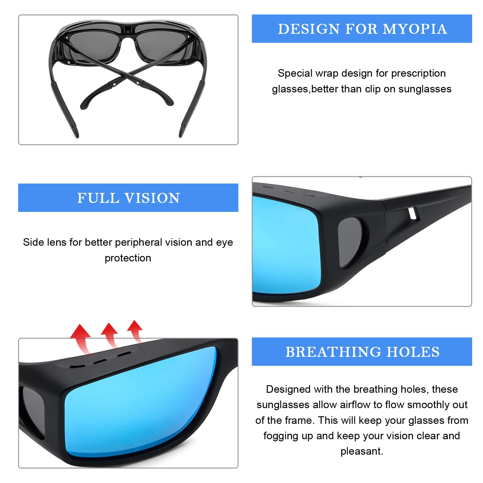Fit Over Prescription Glasses Sunglasses - Excellent fit over regular glasses. Solving your problem of driving in bright sunlight without the high cost of prescription sunglasses or transition lenses that don’t work well inside the car. Comfortable Wearing Experience - wrap around sunglasses as well as profile and shape prevent significantly more sunlight hitting your eyes compared with regular sunglasses. You could start using it when walking around in the sun as well, not just driving. Polarized Lenses UV Protection - Polarized sunglasses with a UV400 protection layer, which can blocks away 99.99% of harmful UVA and UVB radiation to protect your eyes under the sun, plus its polarized effect eliminates any glare but preserves colour, depth, and clarity.e details of the image size before purchasing. This sunglasses can be worn on ordinary glasses. High Quality Material - IGaef over glasses sunglasses with sturdy and flexible frames, anti-scratch and unbreakable TAC lenses, sturdy internal metal hinge structure, comfortable recessed nose pads, all details to ensure for fit over your regular glasses like RX glasses / reading glasses. Customer Service - It’s our mission to provide our customers with the best sunglasses at reasonable prices in the fastest possible time. We will do everything to make you happy and 99.99% satisfied.