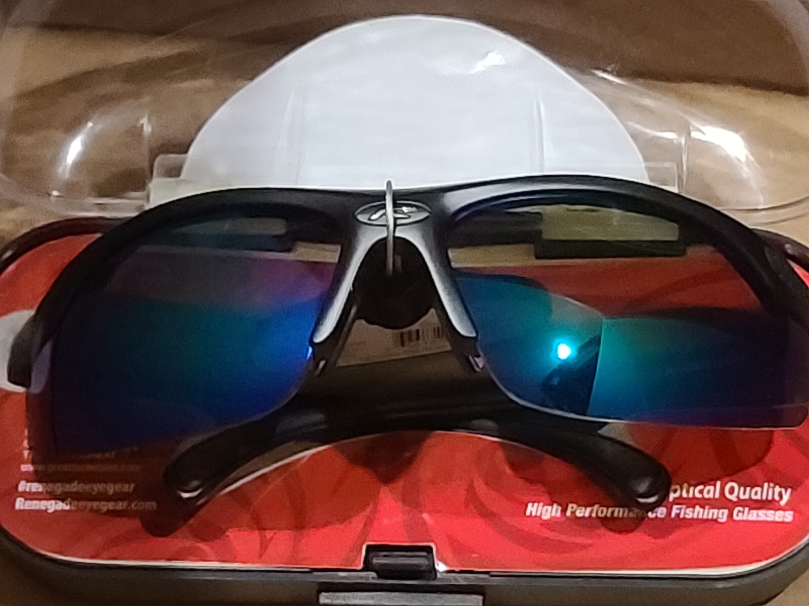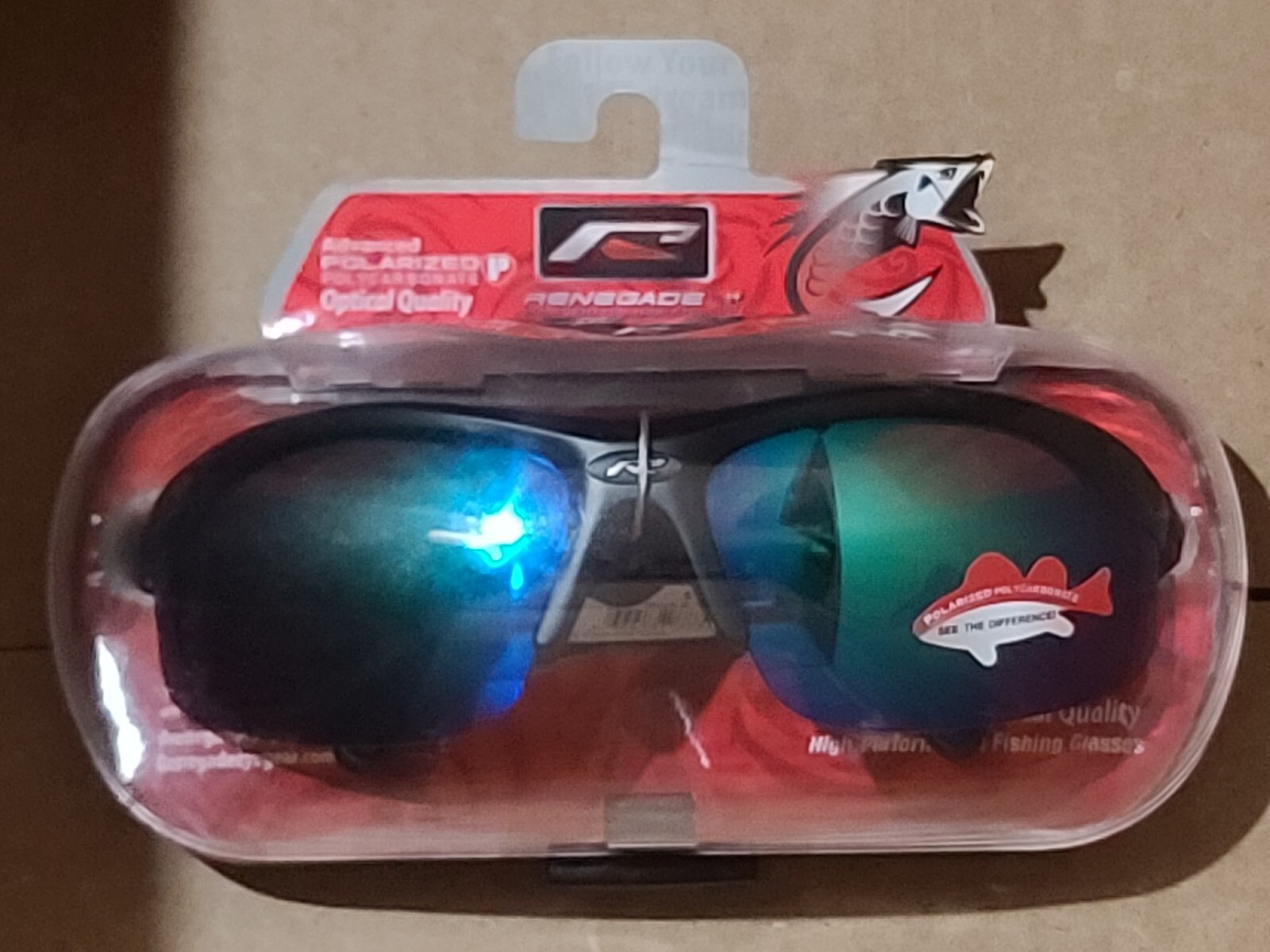 NEW IN THE CASE WITH ORIGINAL PRICE TAG ATTATCHED NEVER USED Stylish High Performance Fishing Polarized Glasses Upgrade your outdoor experience with these top-of-the-line fishing glasses from Renegade. With 100% UVA and UVB protection, polarized lenses, and water-resistant features, these sunglasses are perfect for any fishing trip. The black frame and multicolor lenses provide a stylish look that is suitable for any unisex adult. The polycarbonate lens material ensures optical quality and durability, making these glasses an ideal choice for any outdoor activity. The adjustable nose piece ensures a comfortable fit, while the fish theme adds a touch of personality to your gear. Renegade takes pride in providing high-quality products, and these sunglasses are no exception. Sold as is, the case is not perfect and has some blemishes, the glasses are new and mint! Thank you, Happy Bidding!