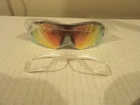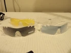This is a new in package pair of sports polarized sunglasses. It comes with 5 interchangeable lenses, hard case, cloth case, cleaning cloth, lens case, and more. Please see pictures.